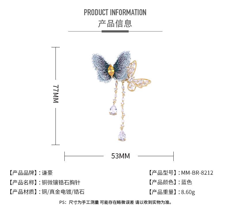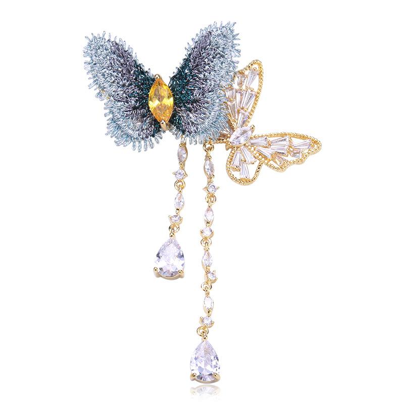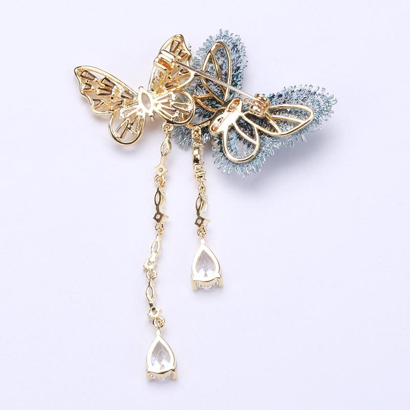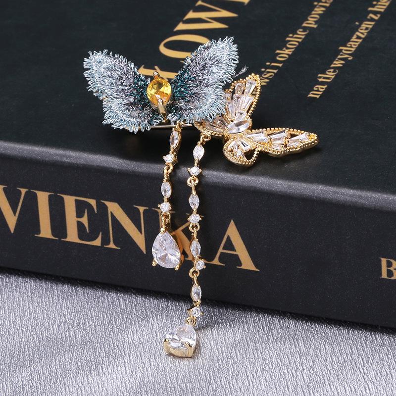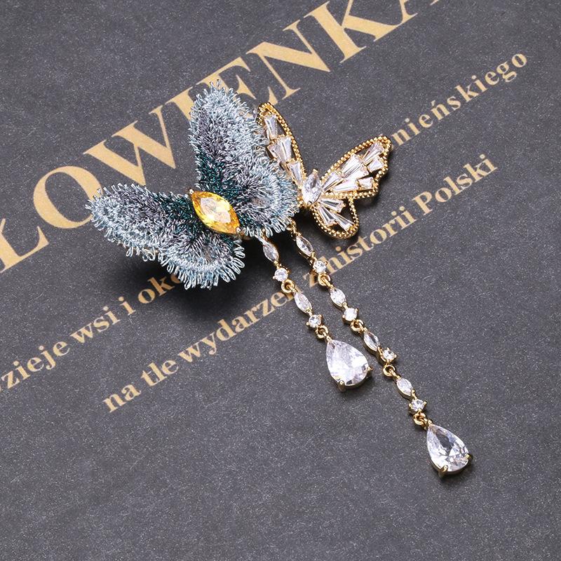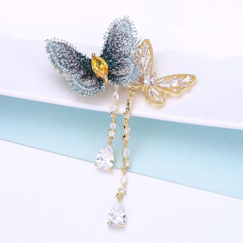 Elegante Broche de Mariposa con Borla de Zircón de Tela Bordada Elegante Estilo Coreano ins Moda Vestido de Celebridad Traje Pin