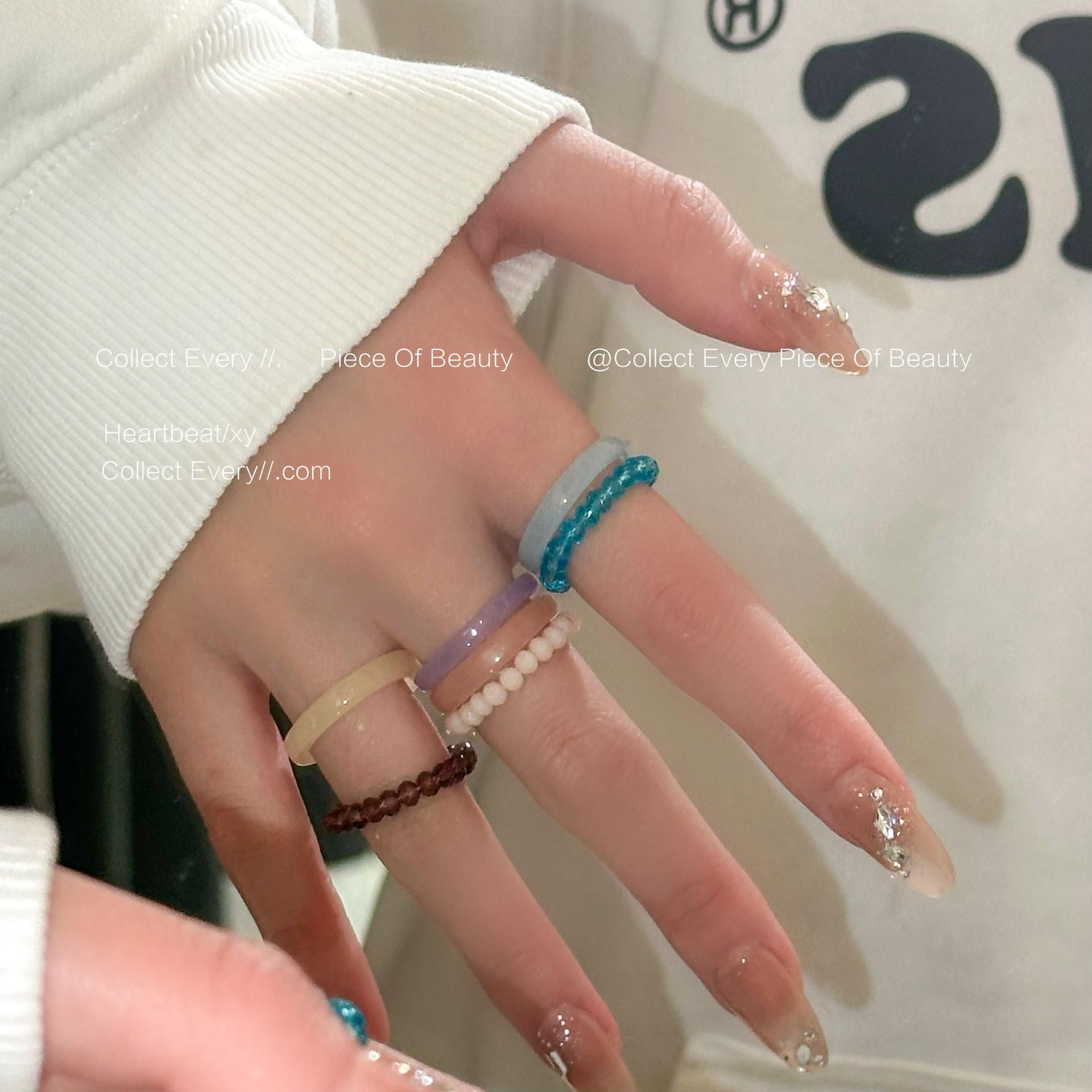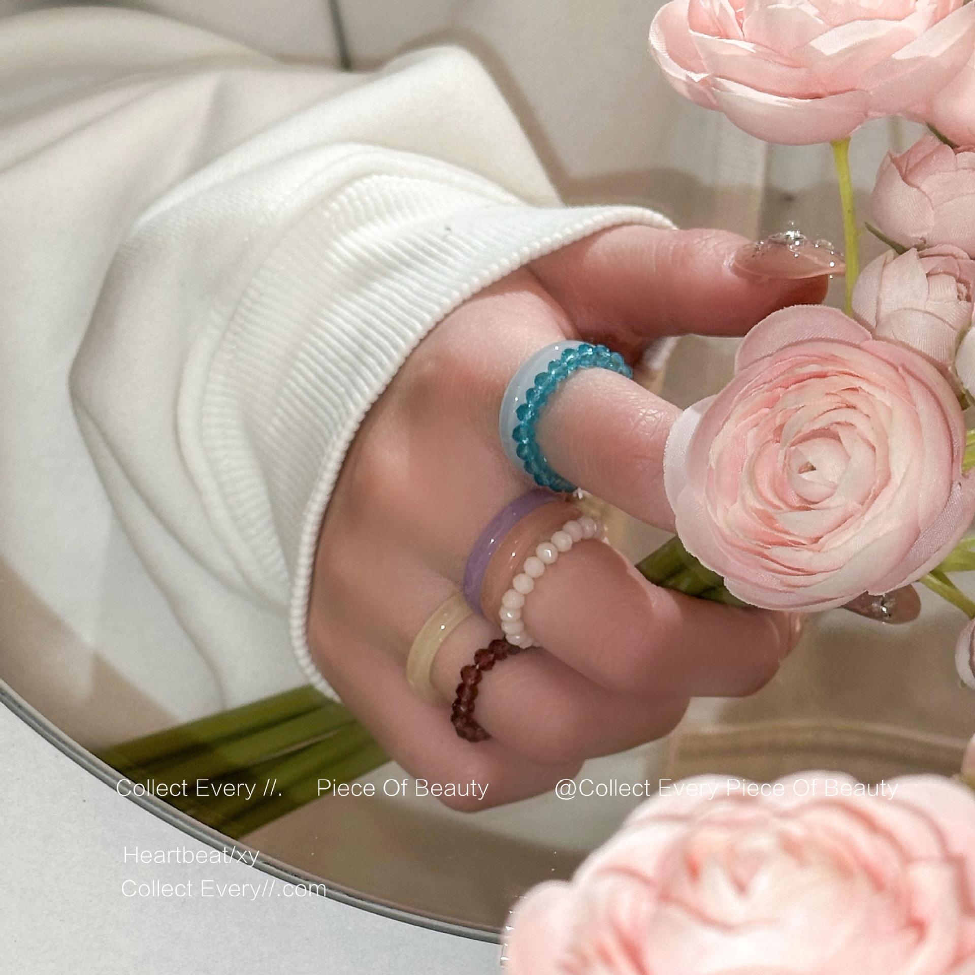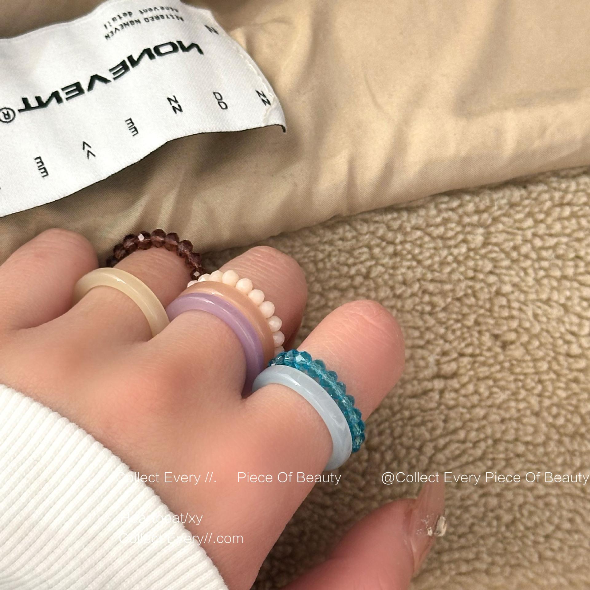 Pulsera de anillo de cristal apilado estilo nicho coreano de alta gama con diseño de anillo liso, novedad de 2024