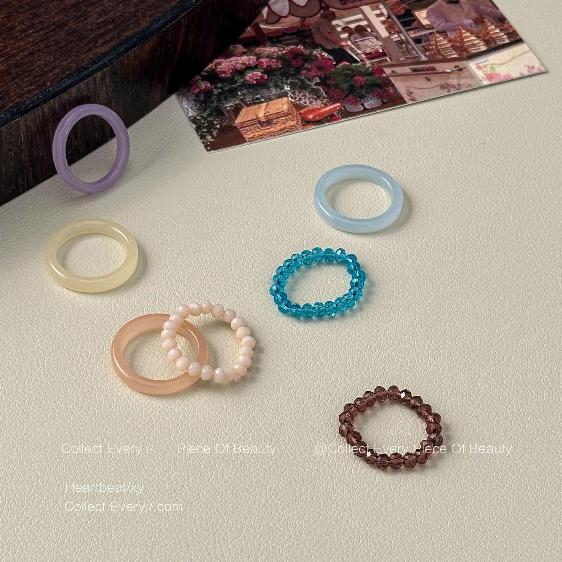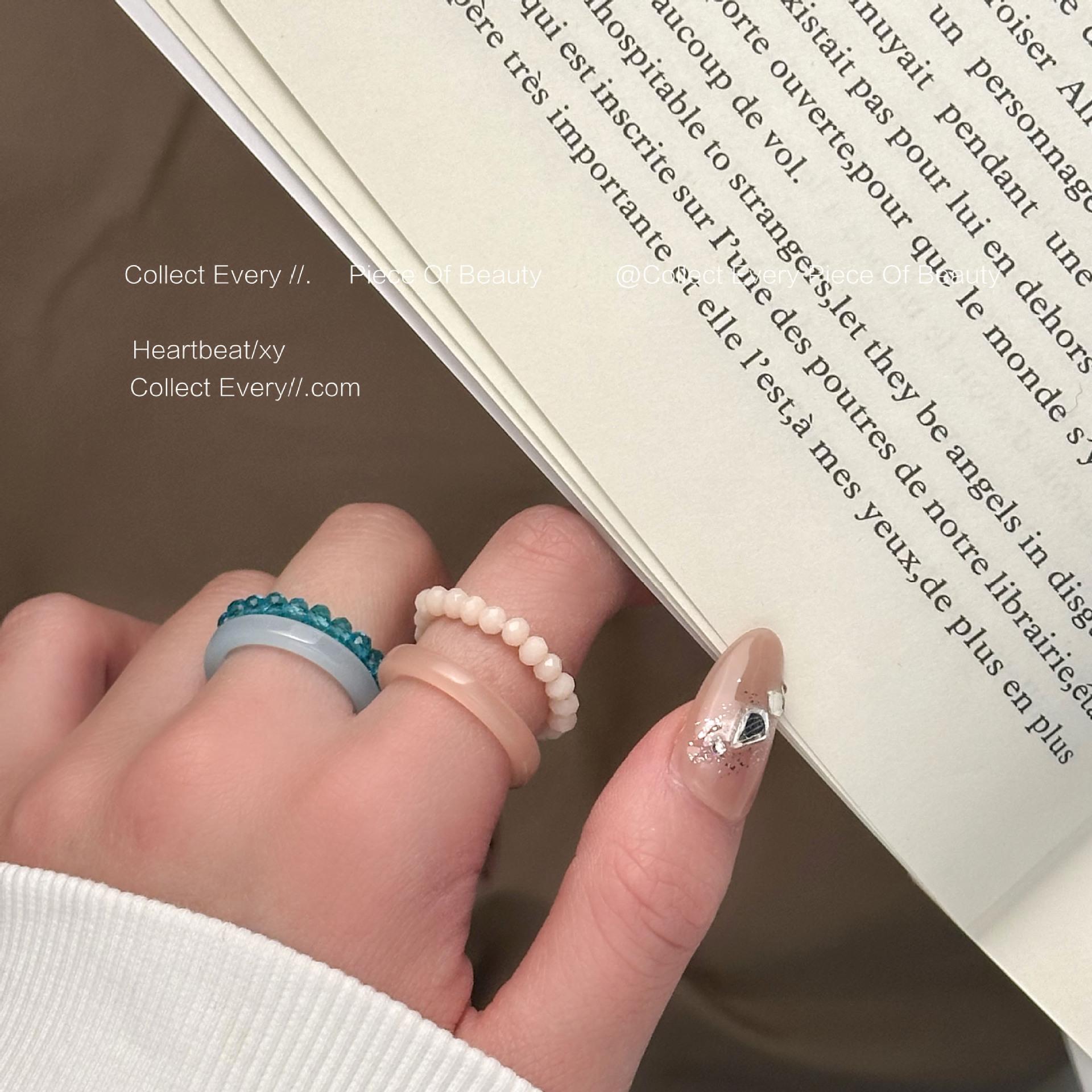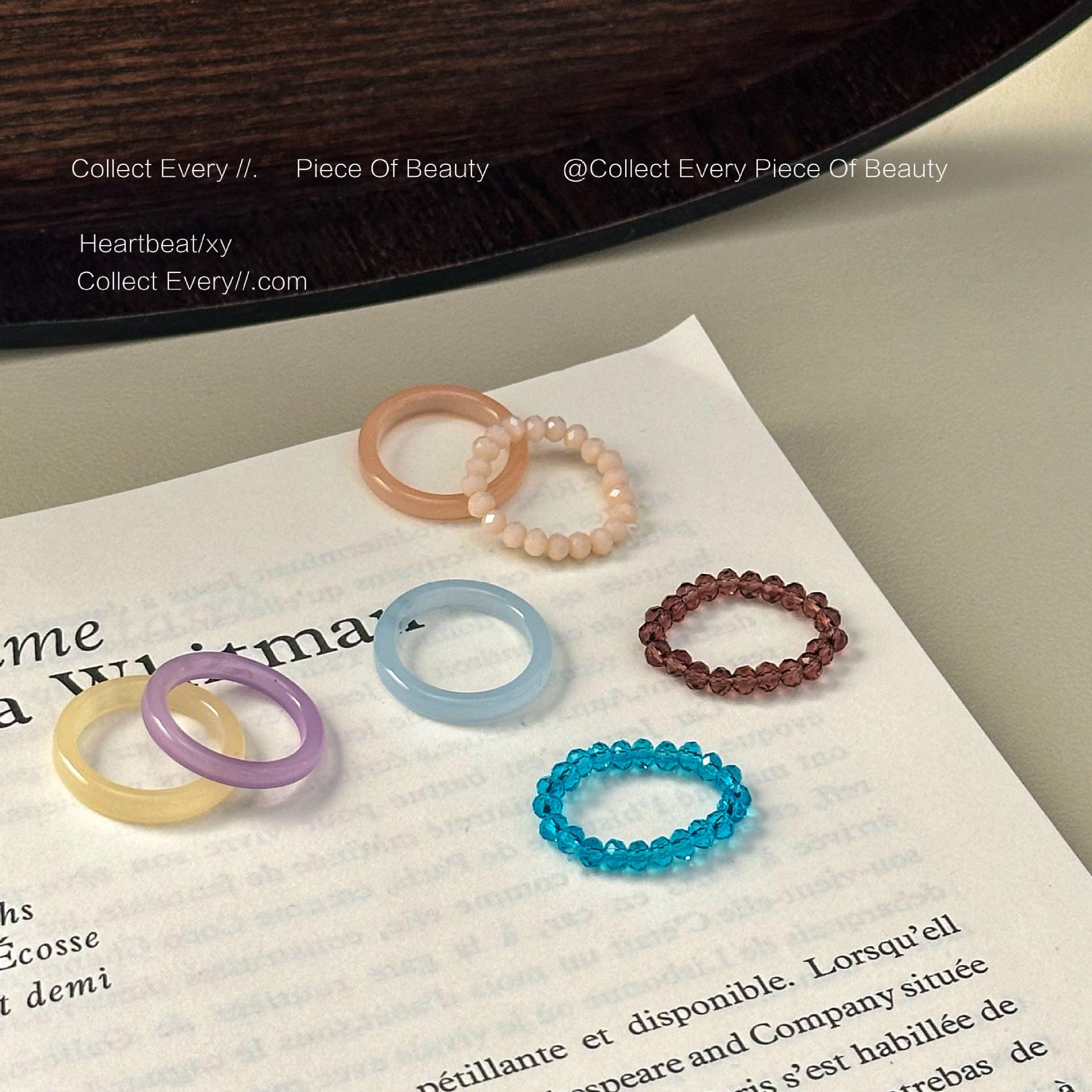 Pulsera de anillo de cristal apilado estilo nicho coreano de alta gama con diseño de anillo liso, novedad de 2024