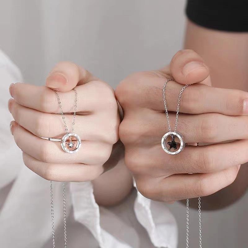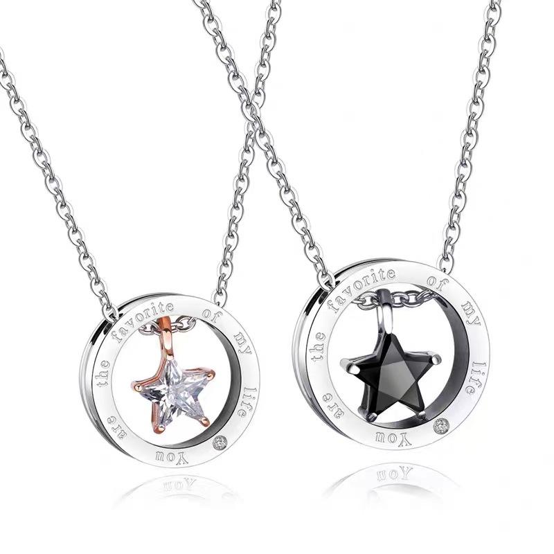 Compra Collar conmemorativo de acero de titanio con diseño de pareja de nichos Star Love, estilo hip hop sencillo, para hombres y mujeres. al por mayor en Joom.pro