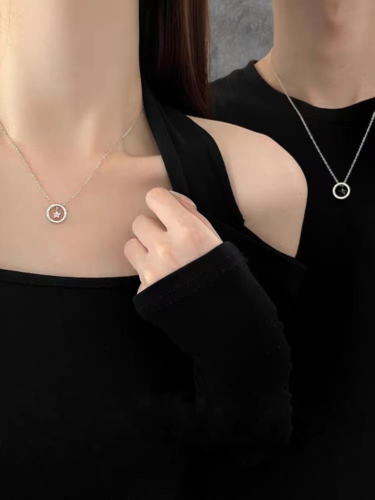 Collar conmemorativo de acero de titanio con diseño de pareja de nichos Star Love, estilo hip hop sencillo, para hombres y mujeres.