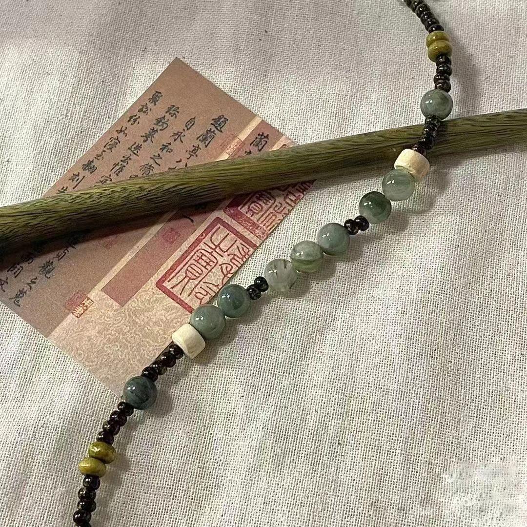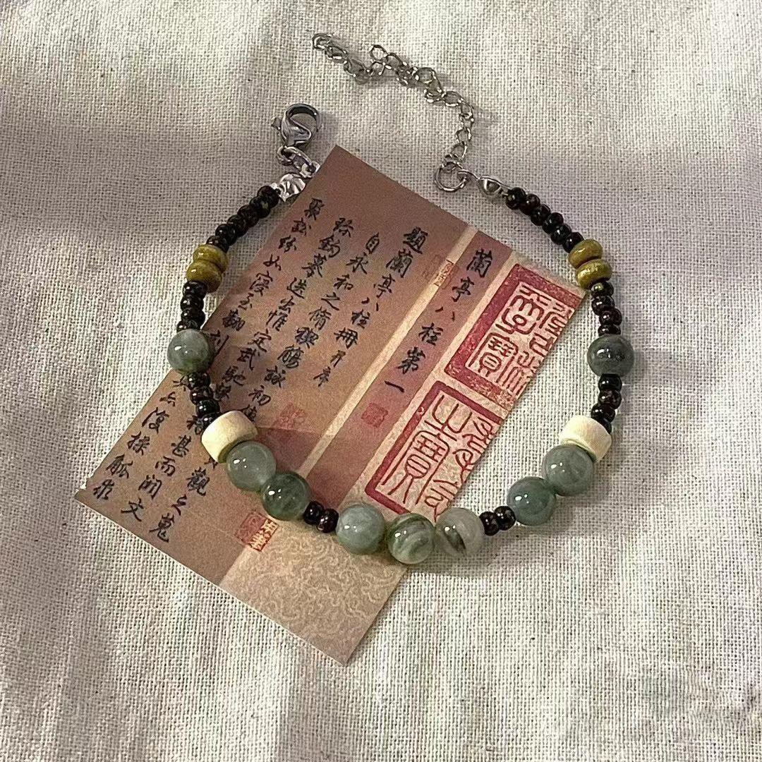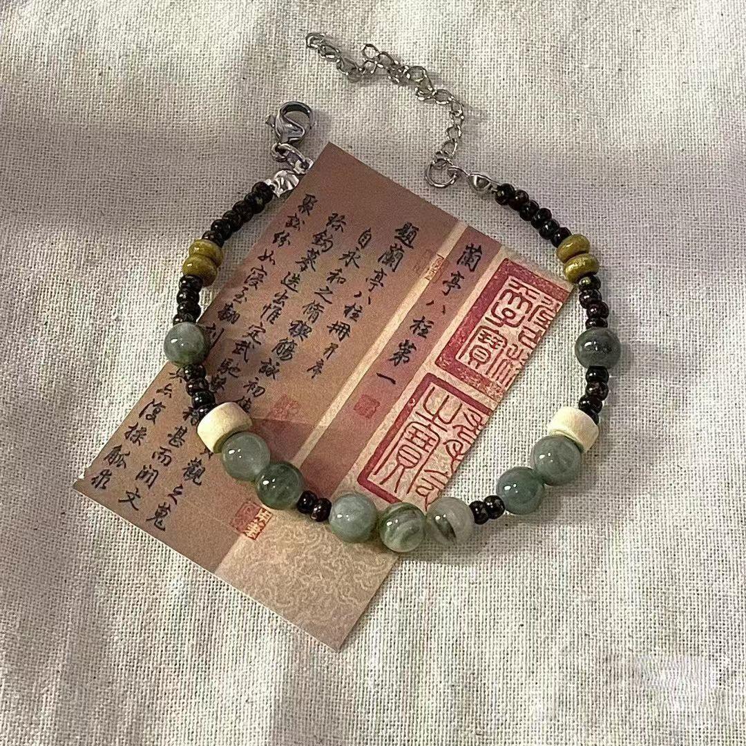 Pulsera Komo Té Verde Vintage Nuevo Chino Pulsera Cool con Cuentas Diseño Nicho Regalo Artístico Cuerda de Mano Tejida