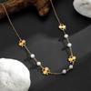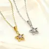 Collar de trébol de cuatro hojas de acero de titanio chapado en oro y circón para mujer, cadena de clavícula versátil de alta gama, joyería de moda, joyería de nicho de lujo ligera