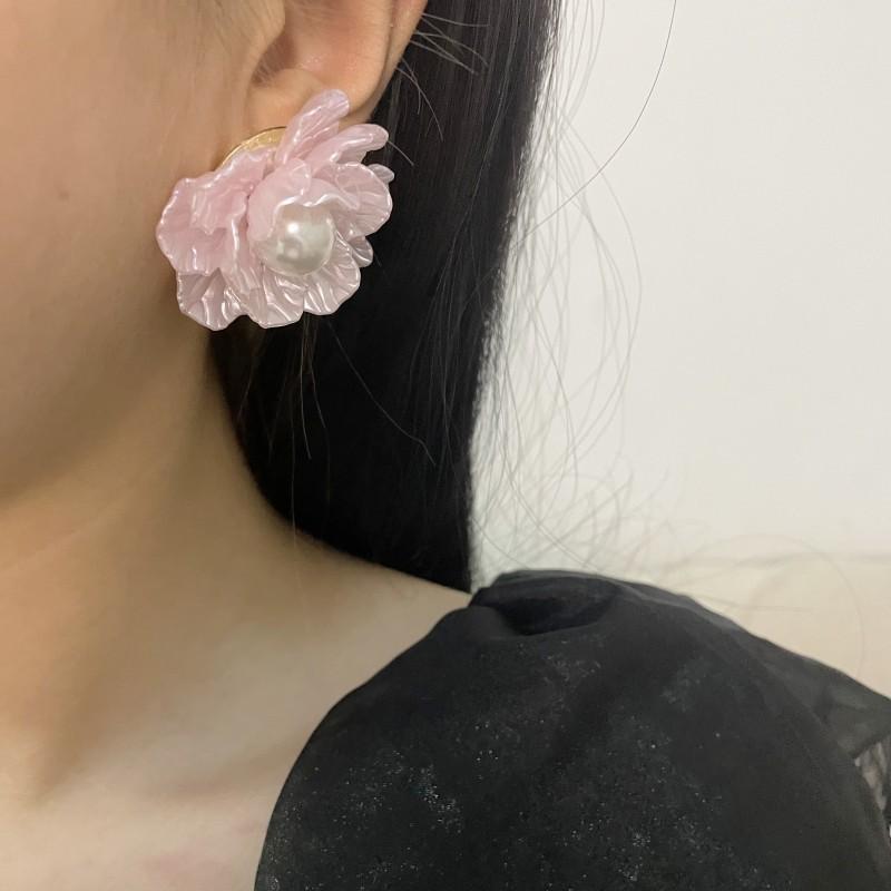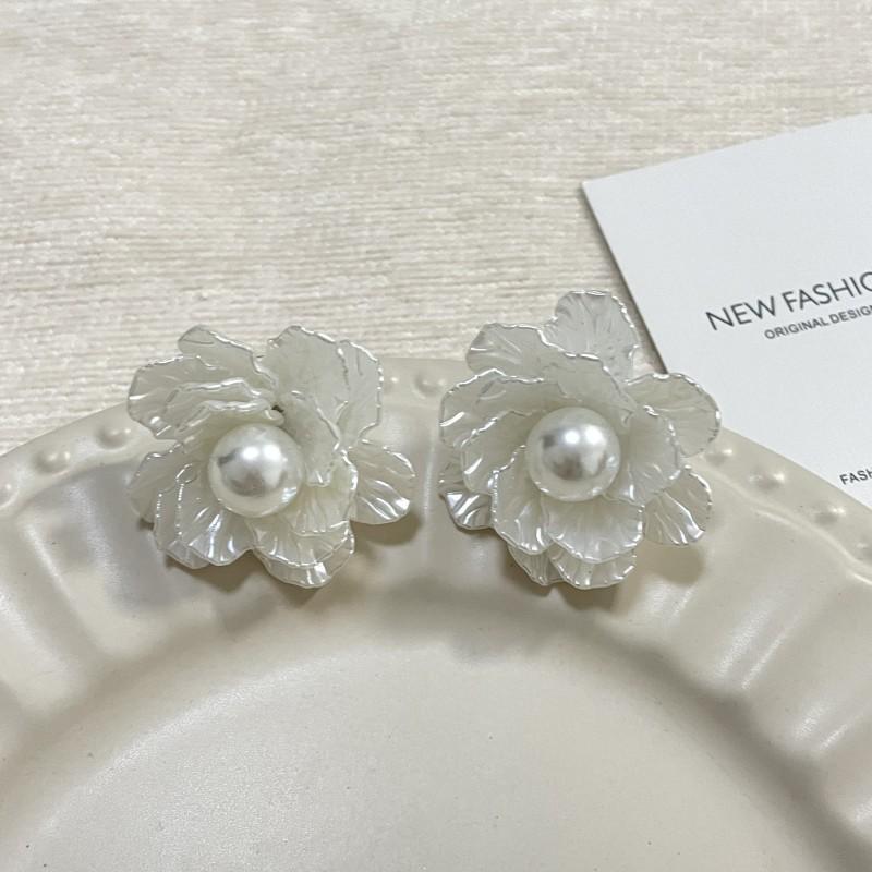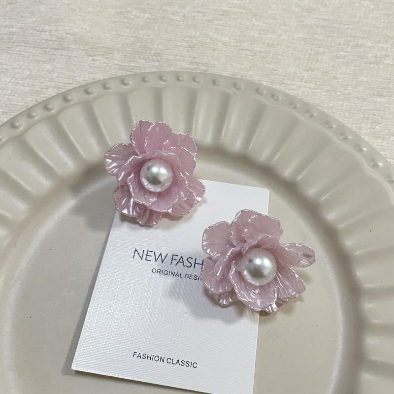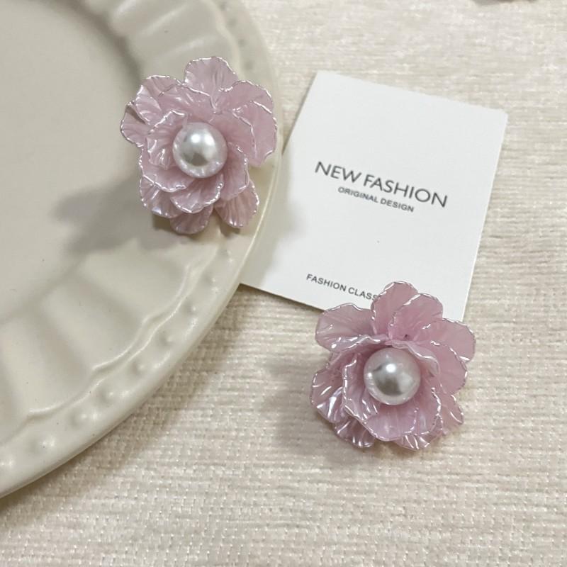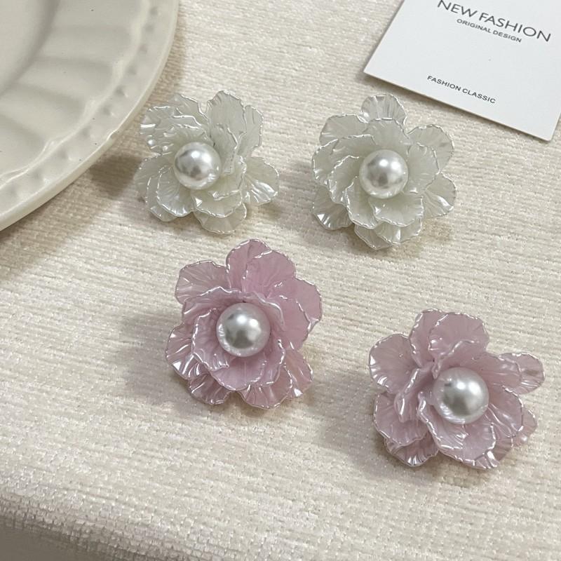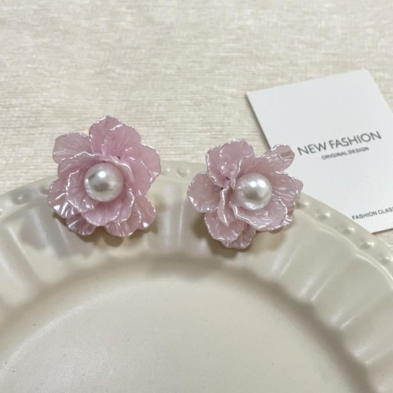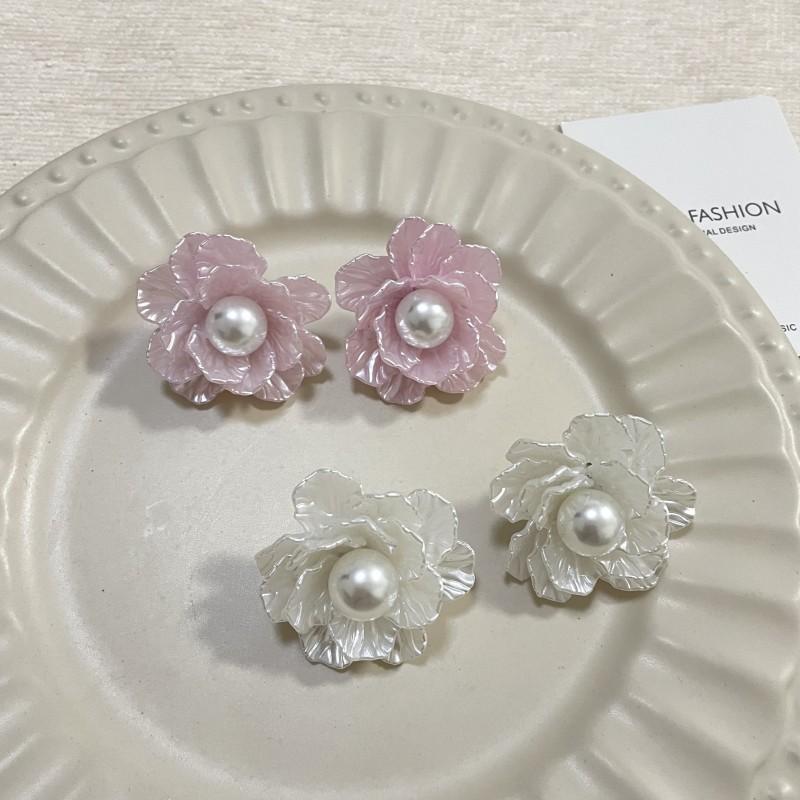 Pendientes pequeños de flores tridimensionales con perlas de temperamento fresco y dulce, elegantes y exquisitos de nicho de moda para mujer, pendientes de alta calidad