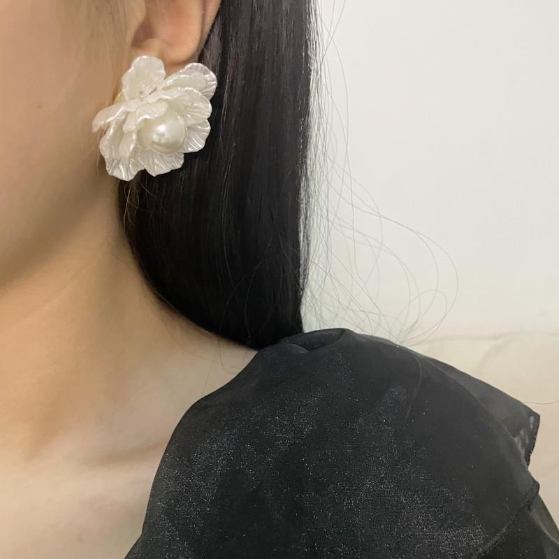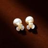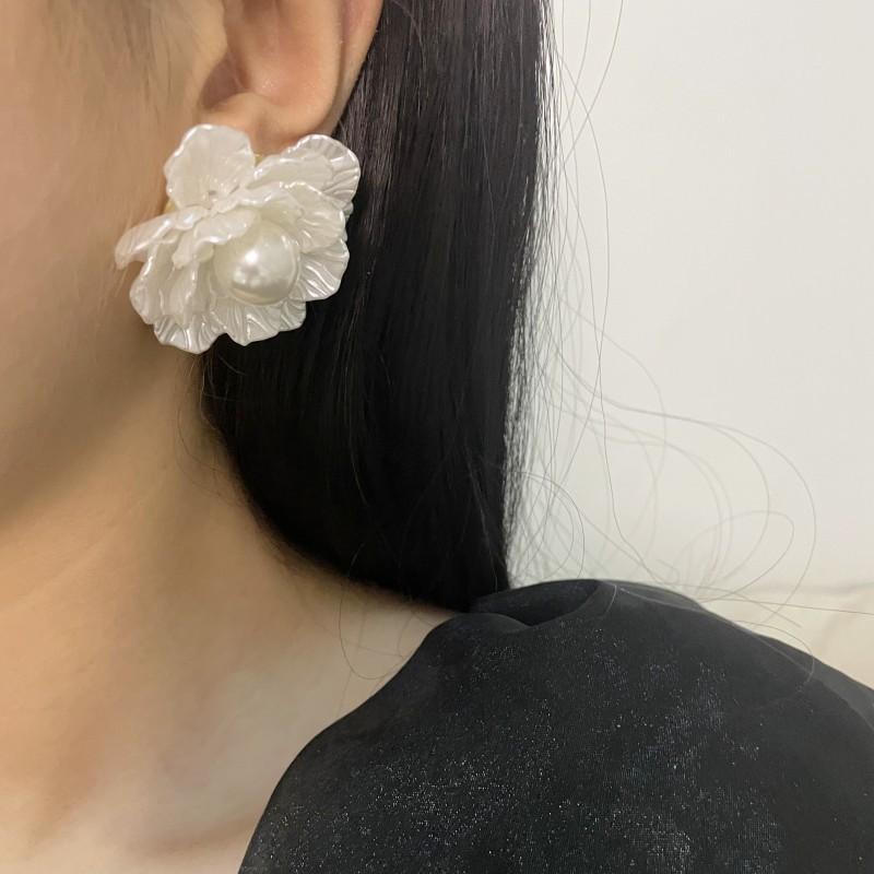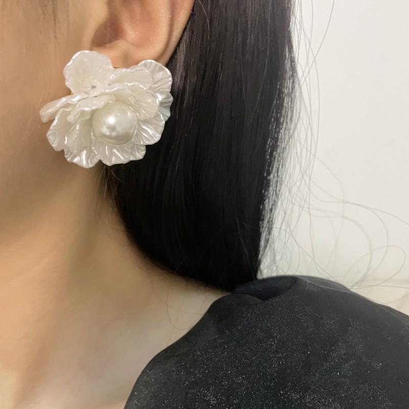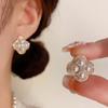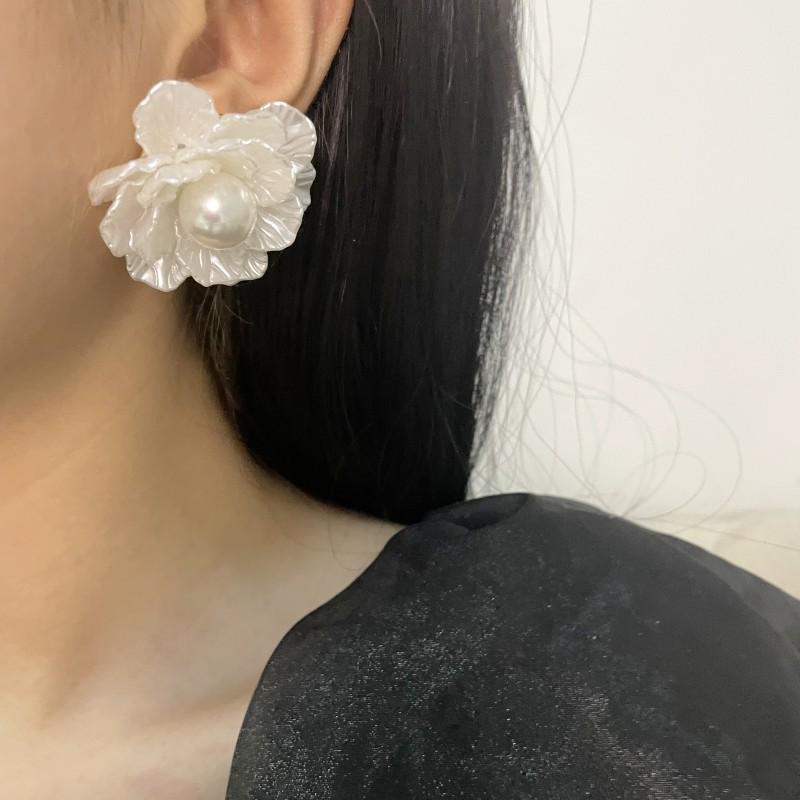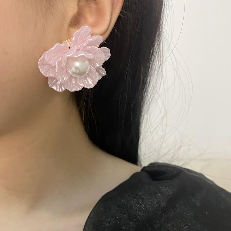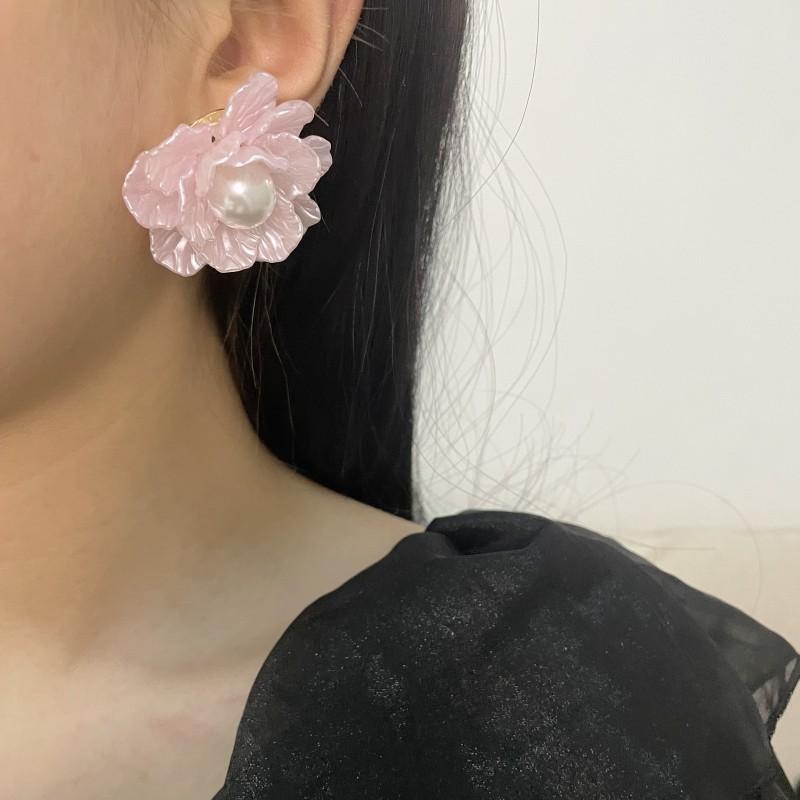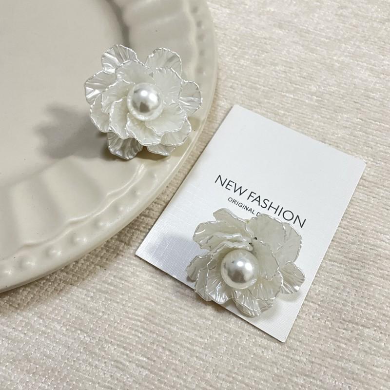 Pendientes pequeños de flores tridimensionales con perlas de temperamento fresco y dulce, elegantes y exquisitos de nicho de moda para mujer, pendientes de alta calidad