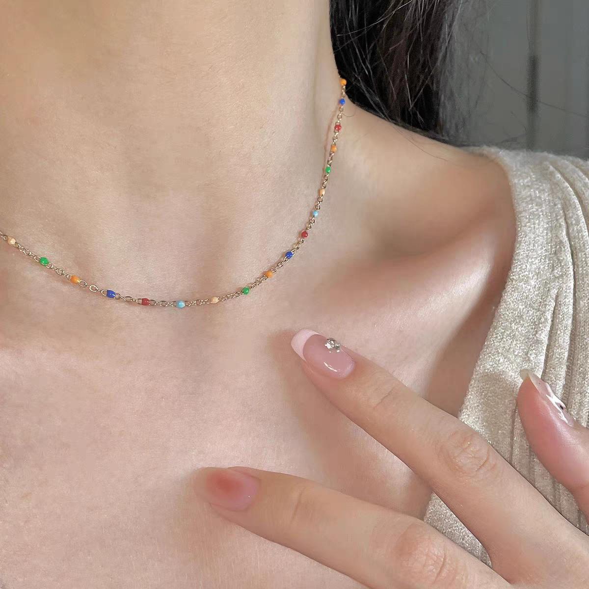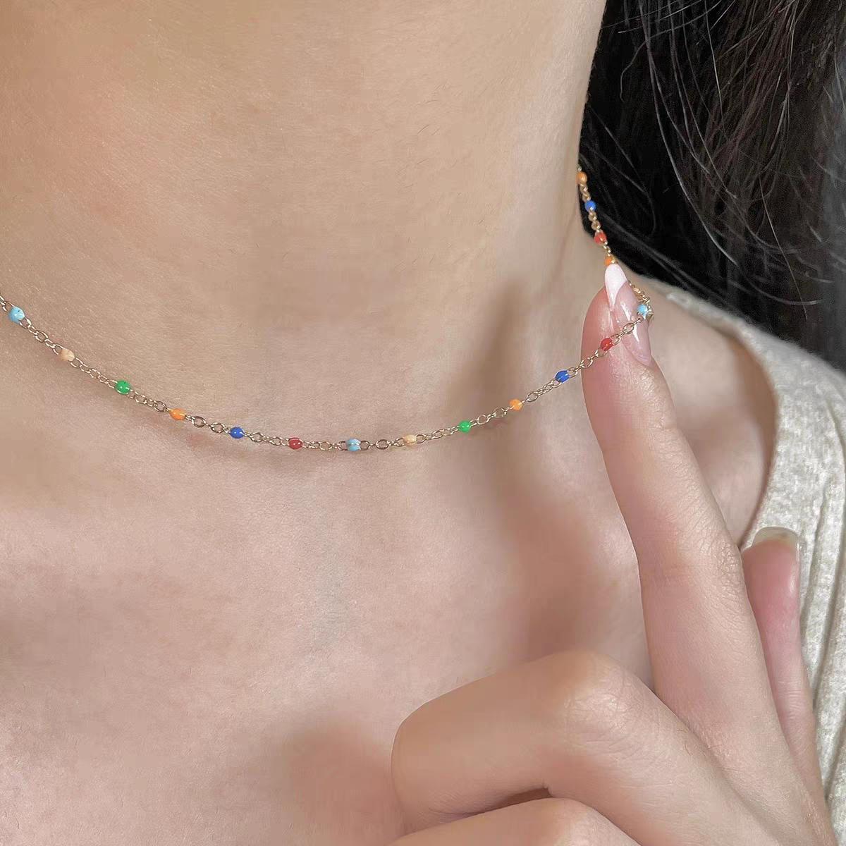Collar de cuentas de cristal de color para mujer, nuevo diseño de nicho de lujo, ligero y explosivo, gargantilla, cadena, 2024
