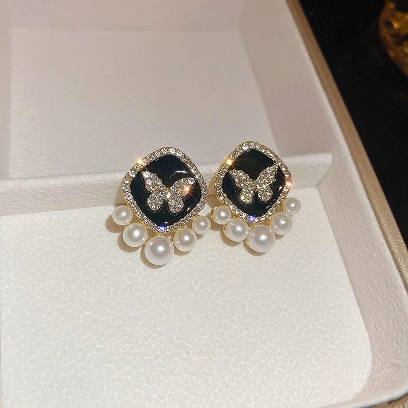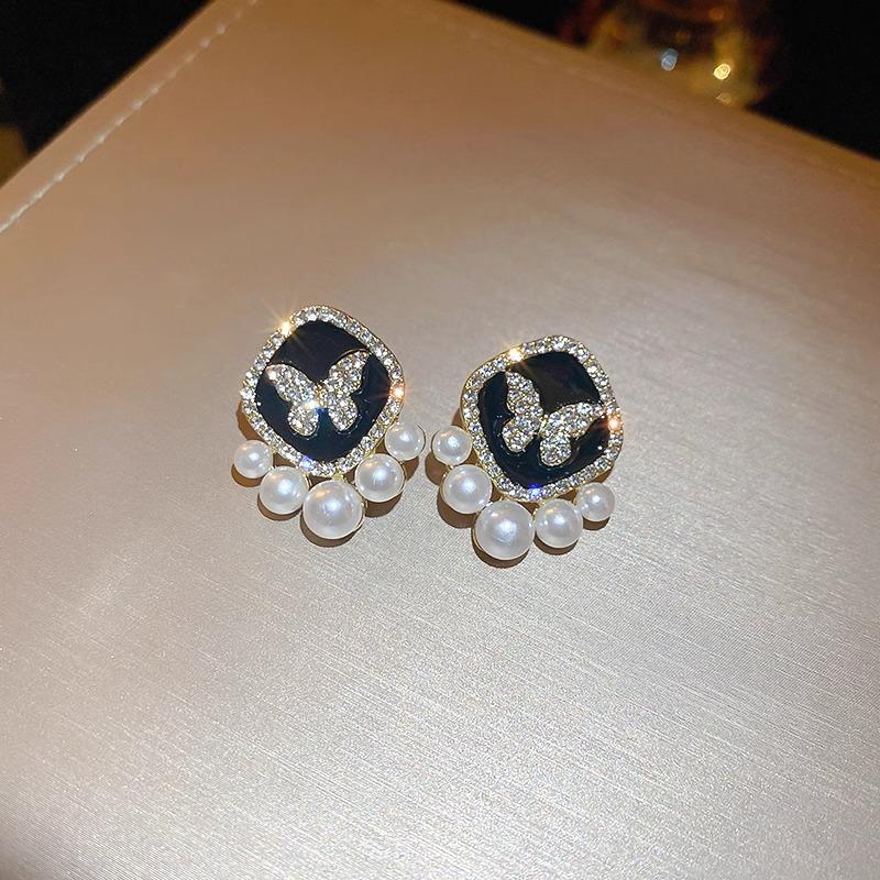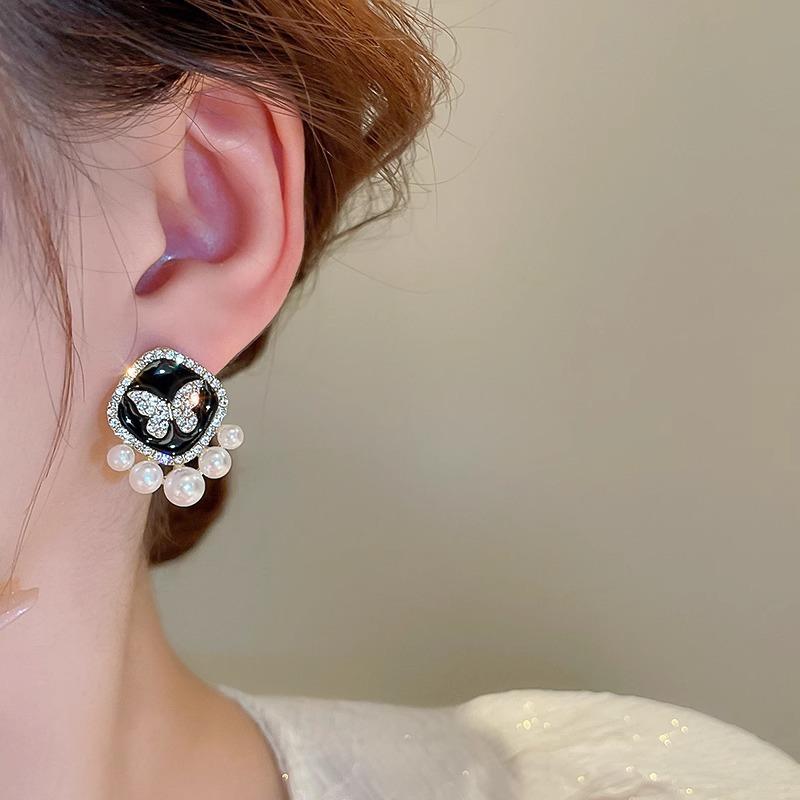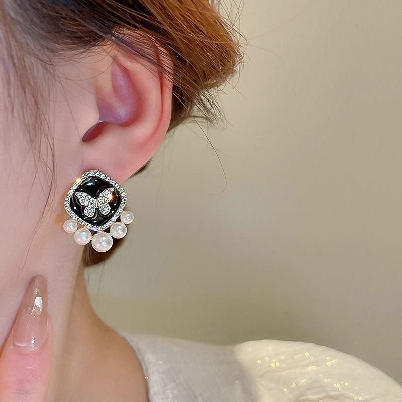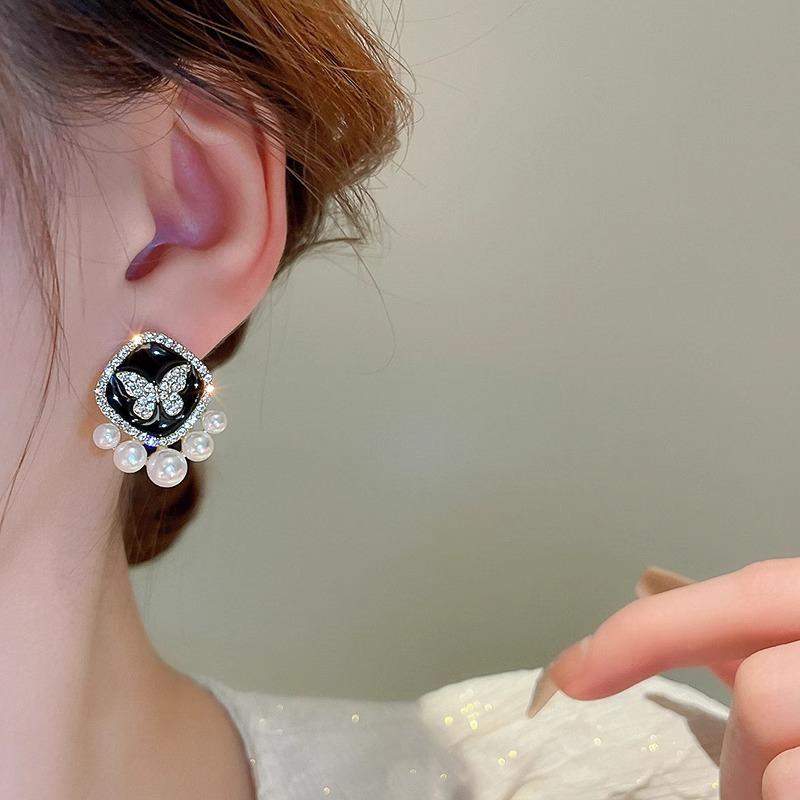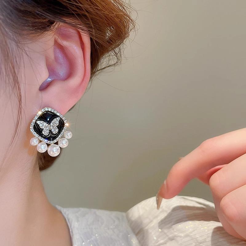 Pendientes de perla de mariposa negra para mujer, 2024, nuevos pendientes de alta calidad, diseño de nicho, pendientes de temperamento único.
