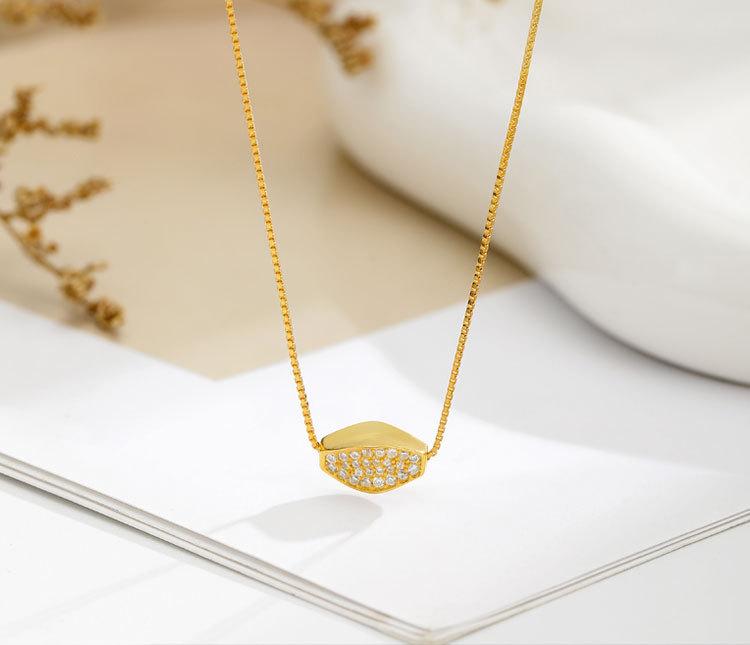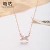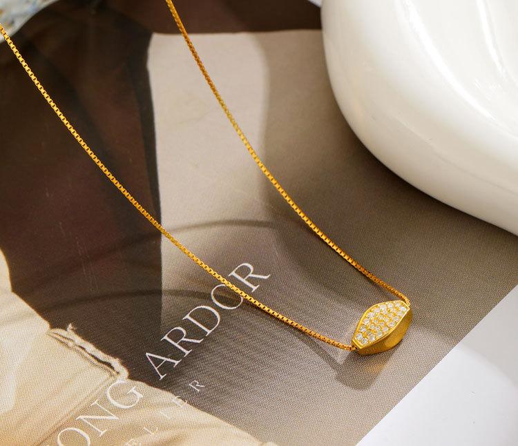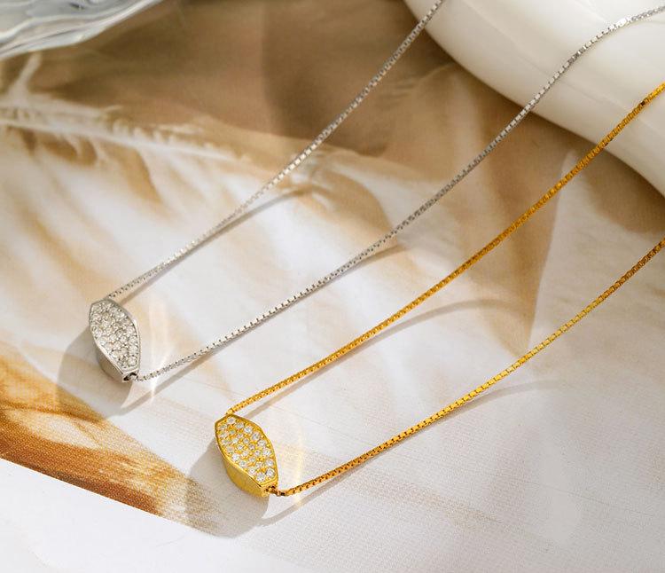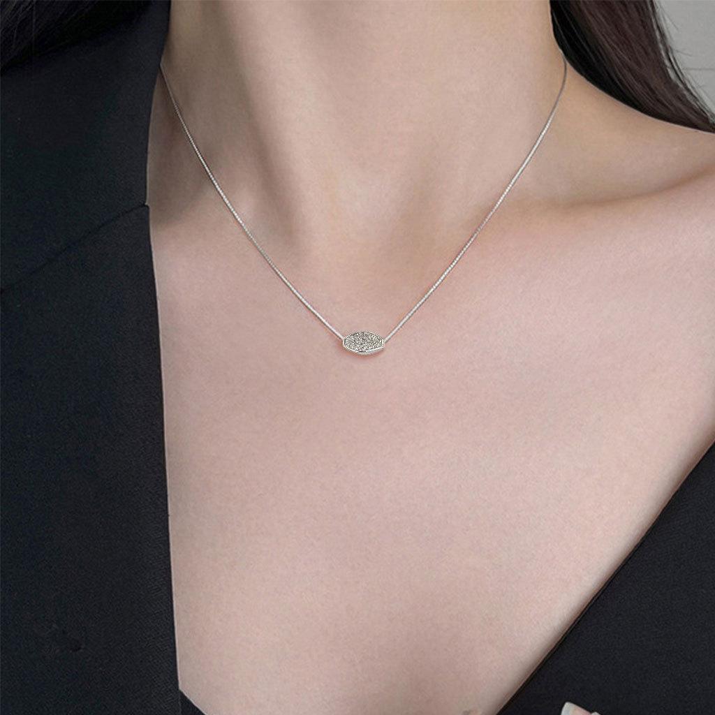 Xi Gu D0542 S925 Collar de plata de ley con diamantes ovalados sencillos para mujer, colgante de cadena de clavícula con nicho de viento frío