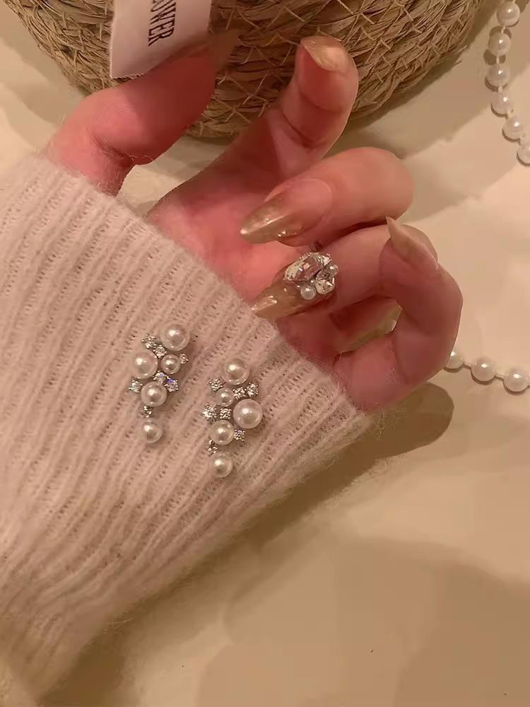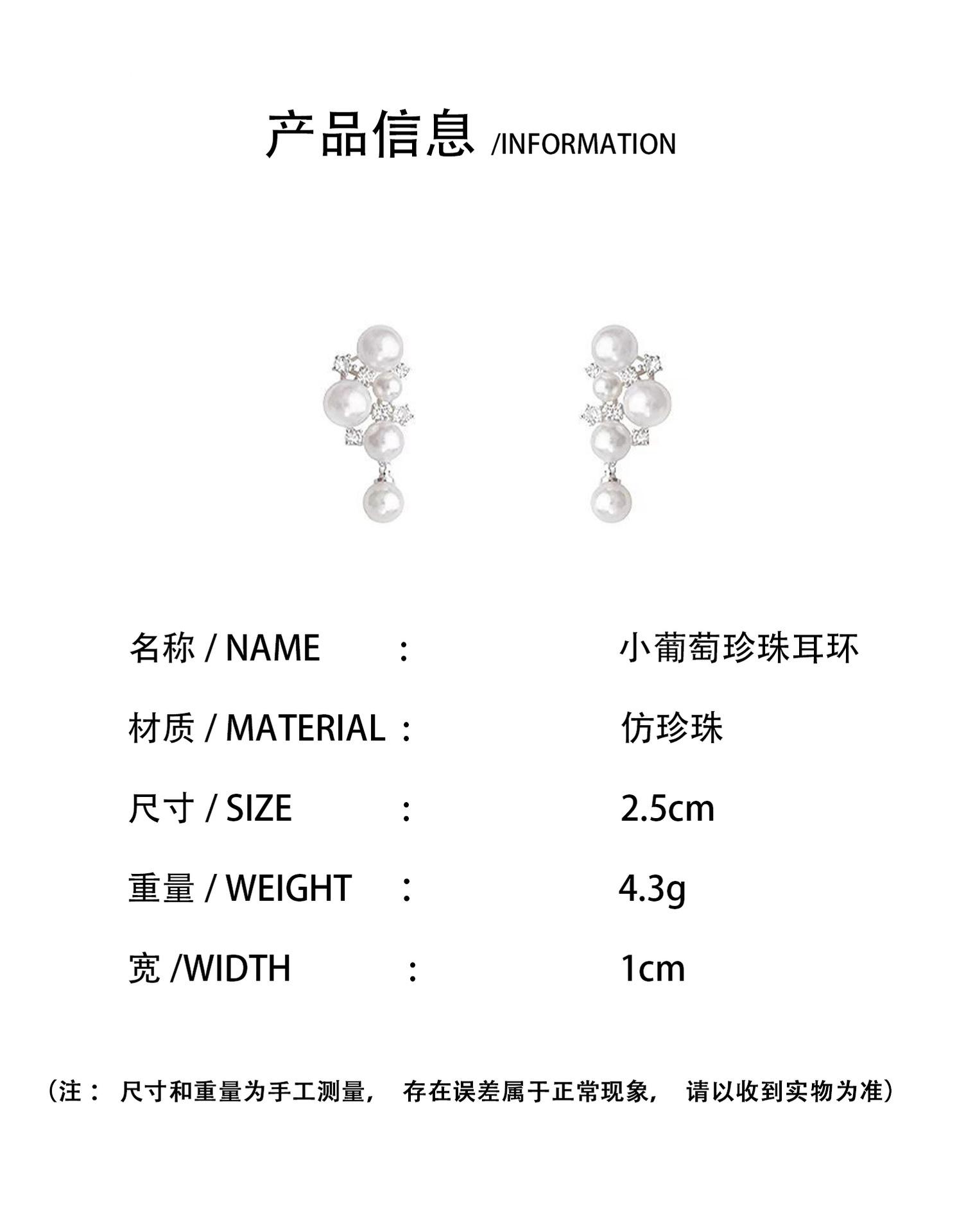 Pendientes de perlas elegantes retro franceses, pequeños pendientes de uva con cordón, ligeros y de lujo, con clip para la oreja para mujer.