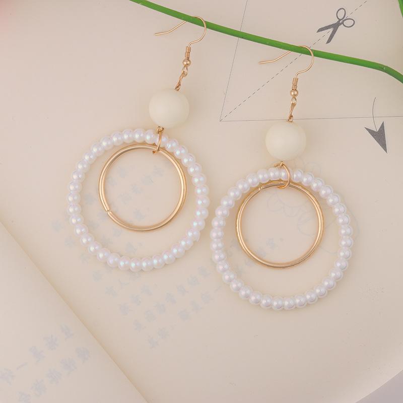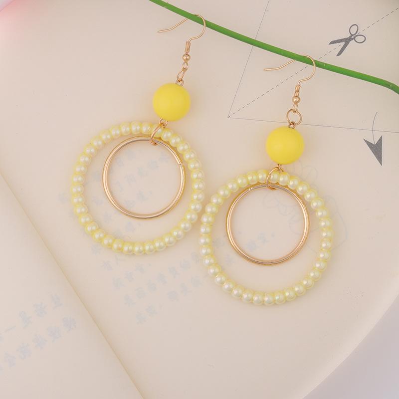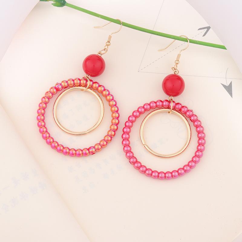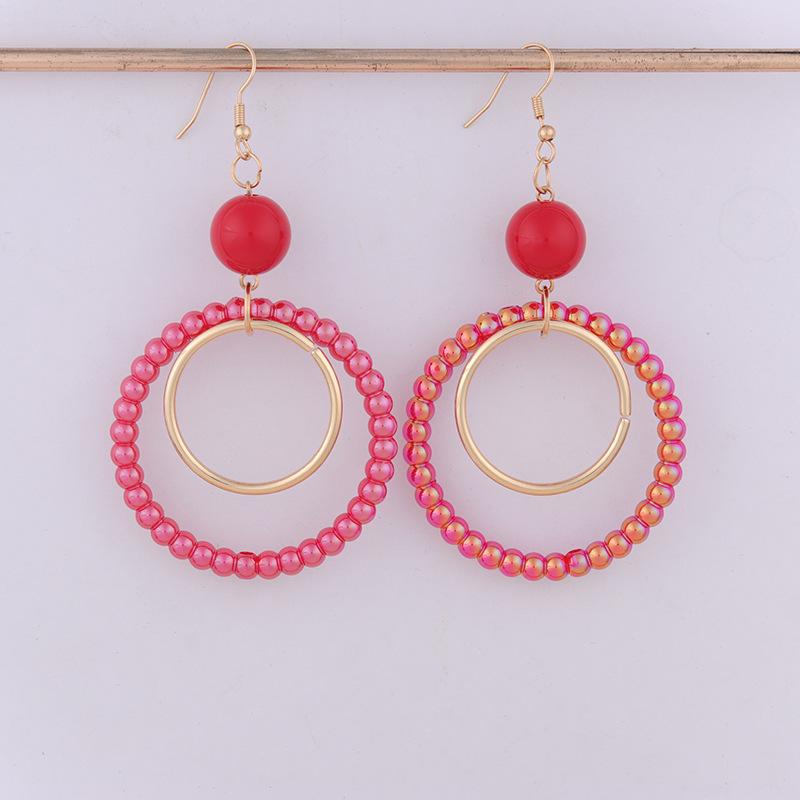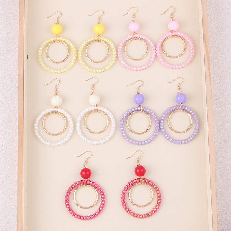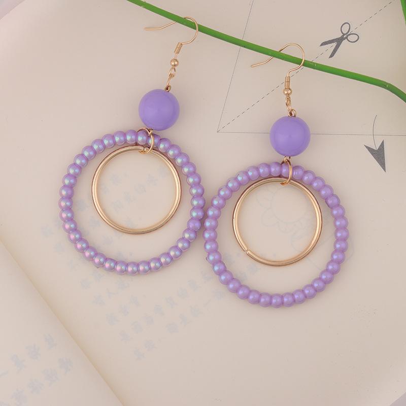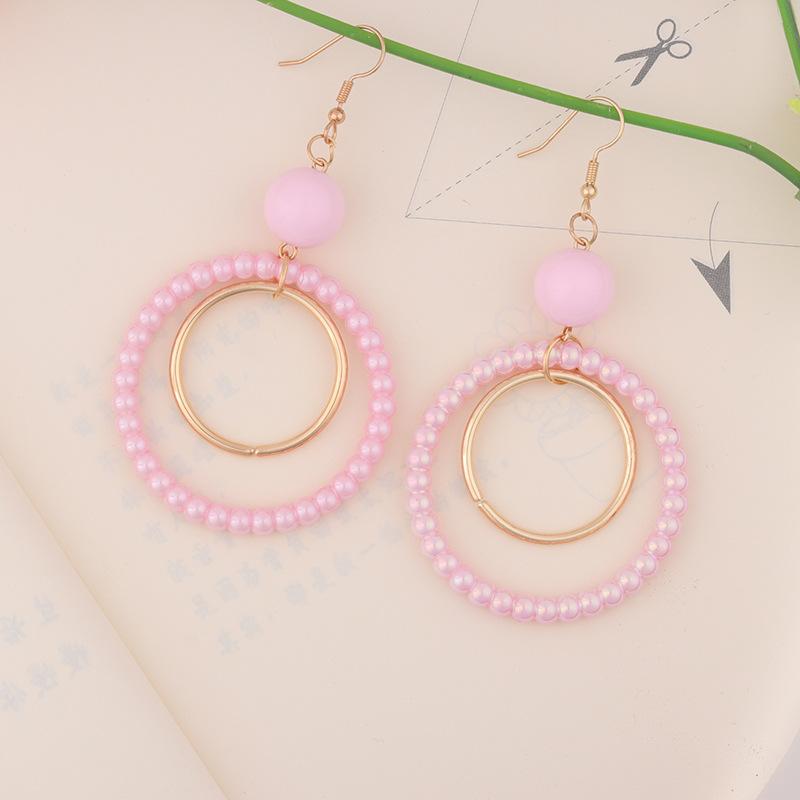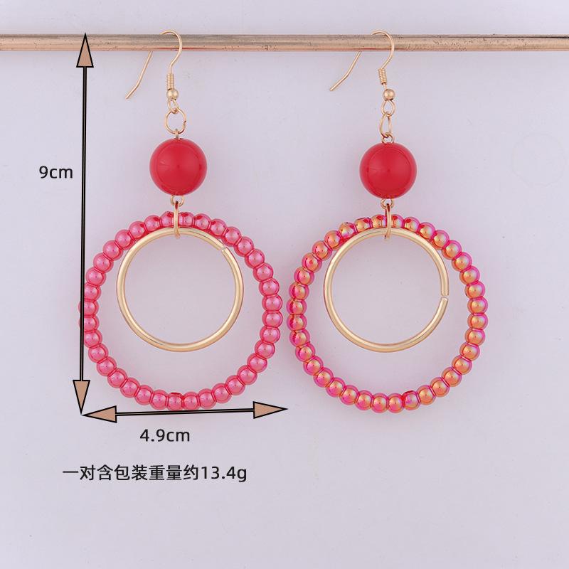 Pendientes de verano con cuentas de mijo y dopamina, doble aro de metal acrílico, pequeños y frescos, sencillos, joyería para las orejas para mujer