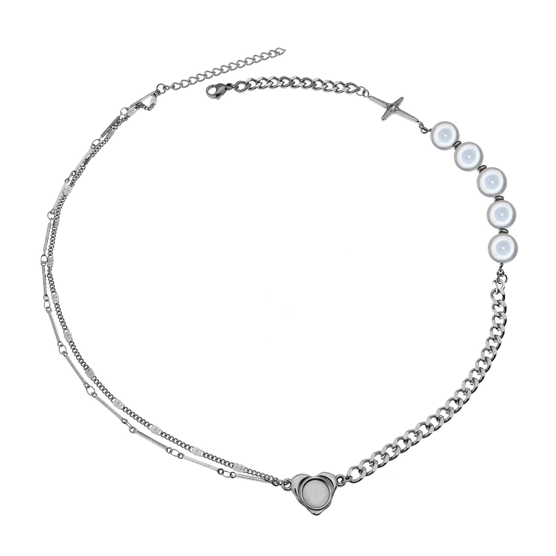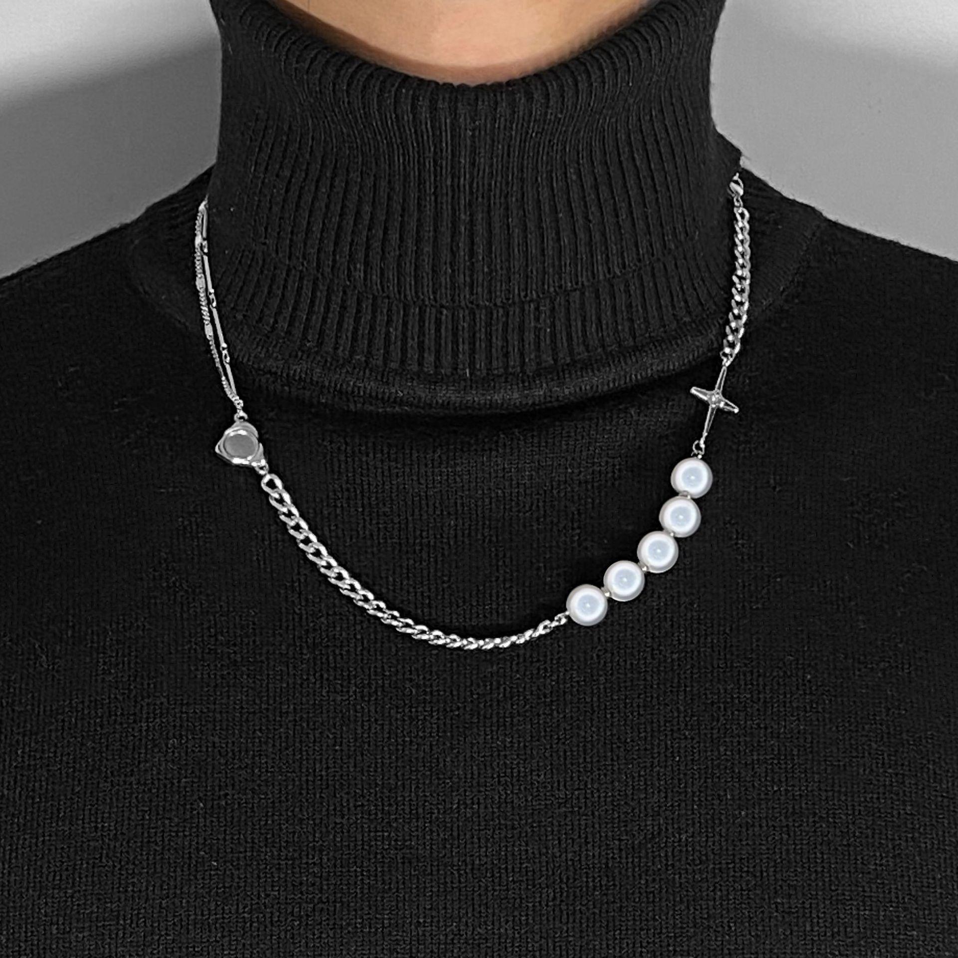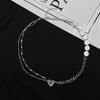Collar largo con forma de corazón y temperamento rojo con cadena de clavícula de perla cruzada con costura creativa de moda europea y americana para mujer
