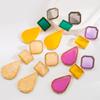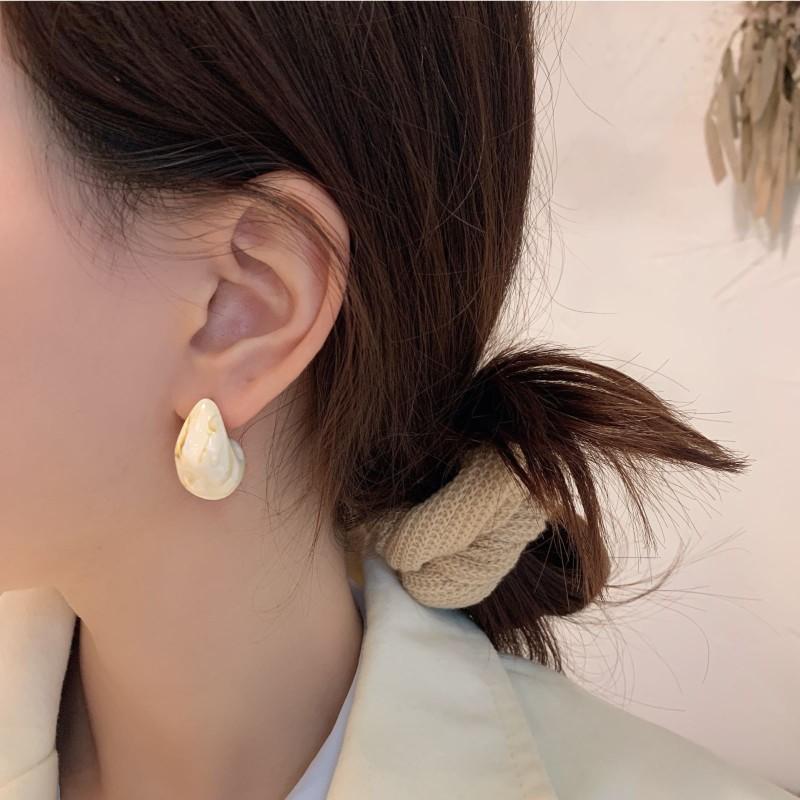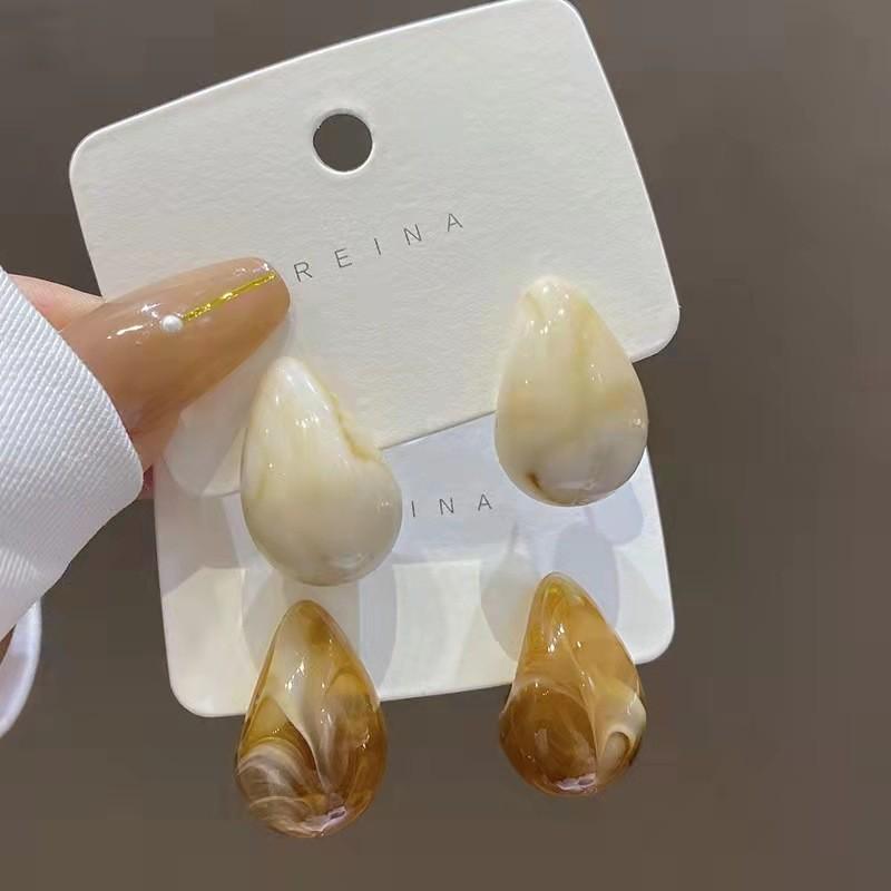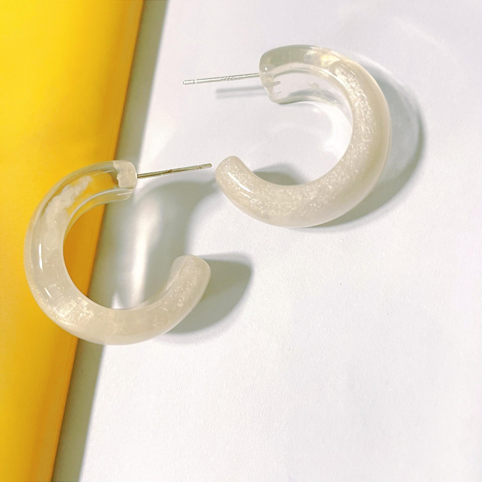 Aretes de Resina con Diseño Coreano con Patrón Geométrico Aguja de Plata S925 Estilo Vintage Versátiles Aretes en Forma de C para Mujer con Cristal