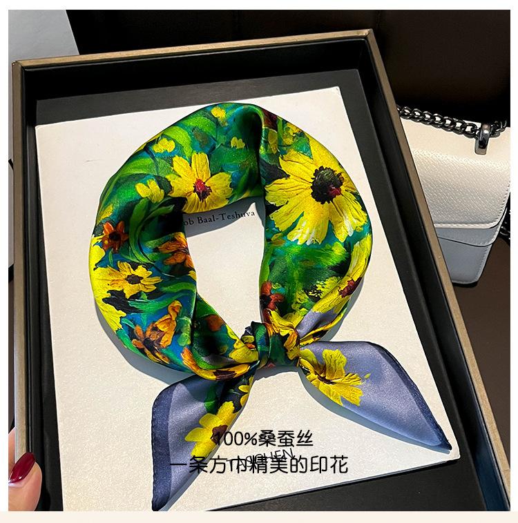 Pañuelo cuadrado de seda multicolor, 100% seda morera, tira pequeña, para mujer, primavera y otoño, bufanda pequeña, combina con todo.