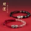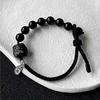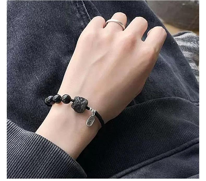 Pulsera de pareja de obsidiana de oro y plata natural de 8 mm para hombre, danza del león, gato de la suerte, plata esterlina, cuerda de mano, personalidad simple, moda