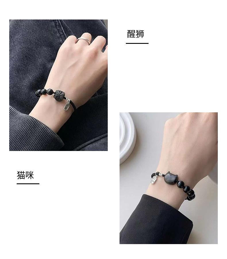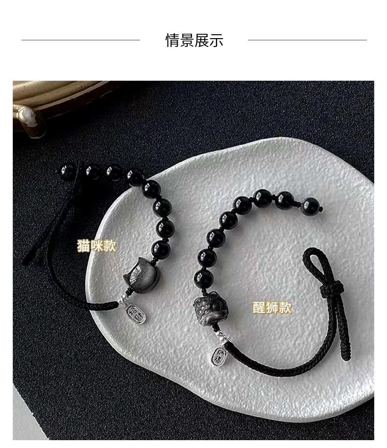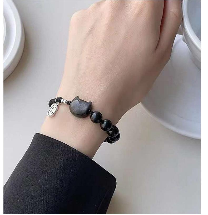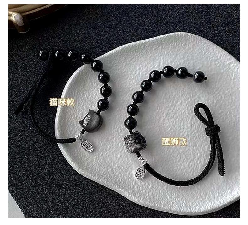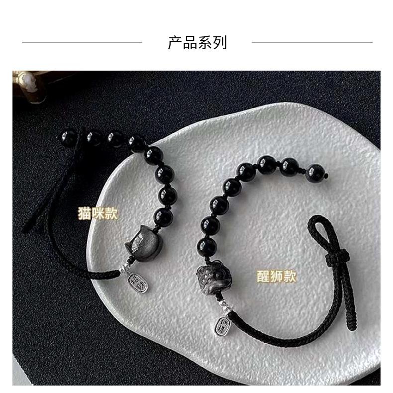 Gold obsidian cat silver hand rope women (default hand circumference 15.5cm)