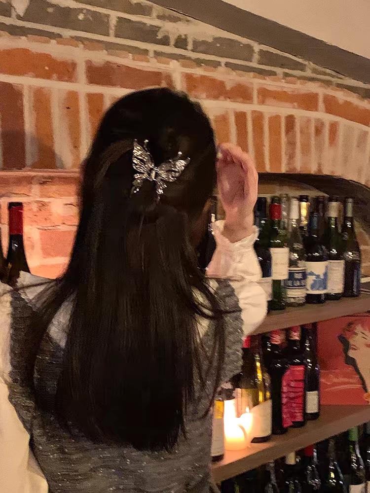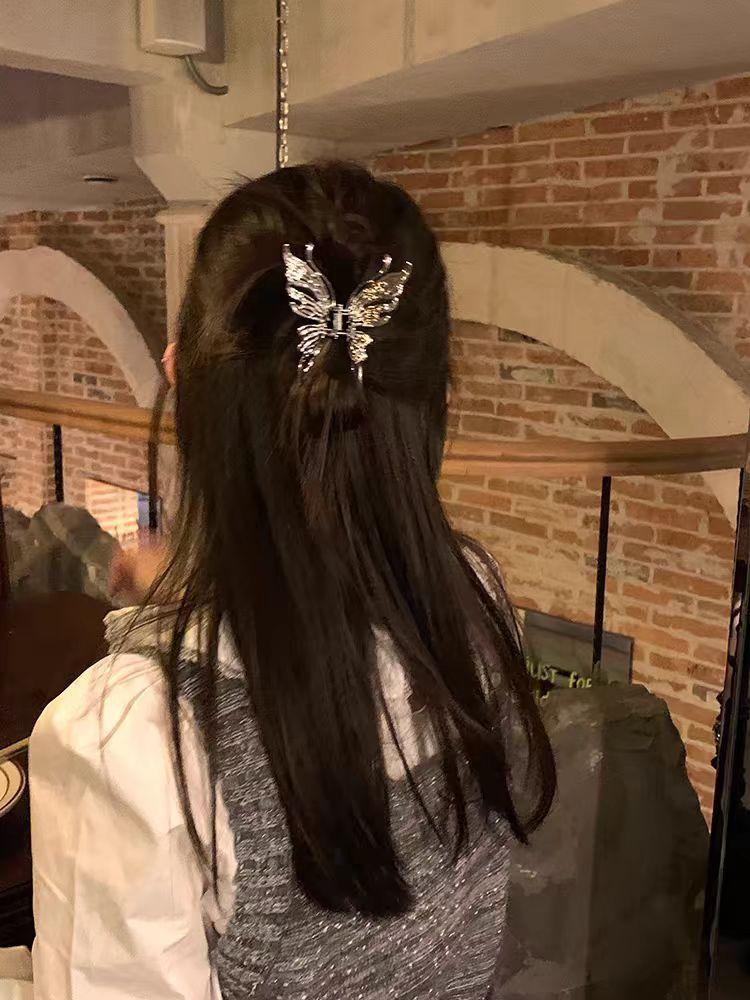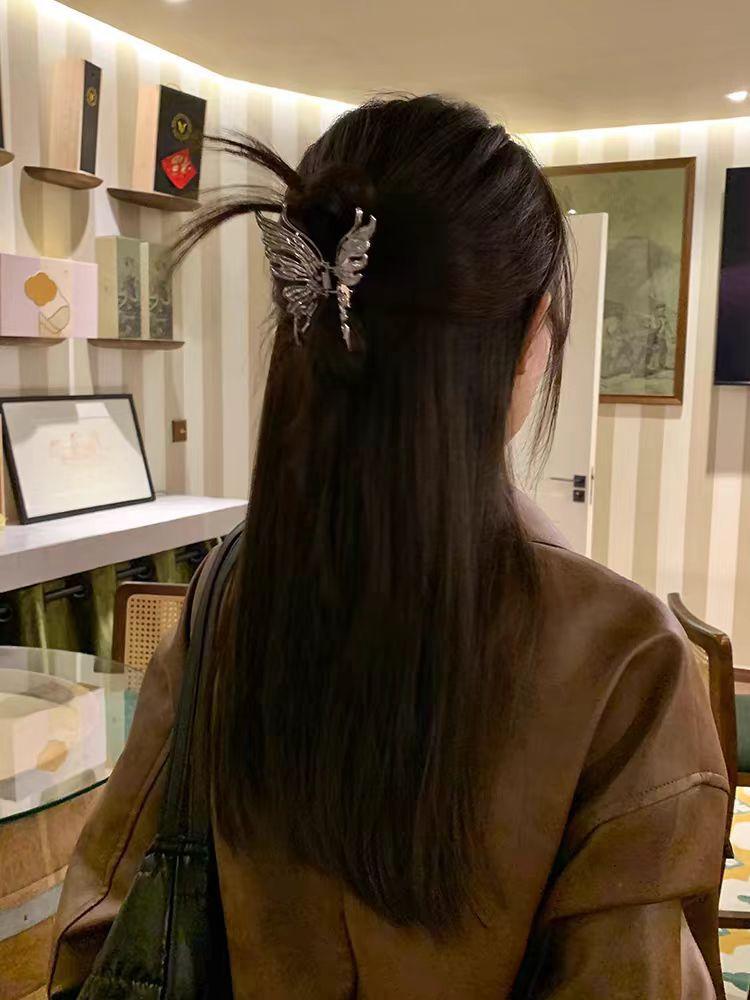 Horquilla de metal con forma de mariposa líquida de estilo frío 2024, nueva horquilla de tiburón, accesorios para el cabello de alta calidad, horquilla femenina.