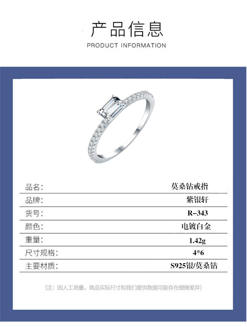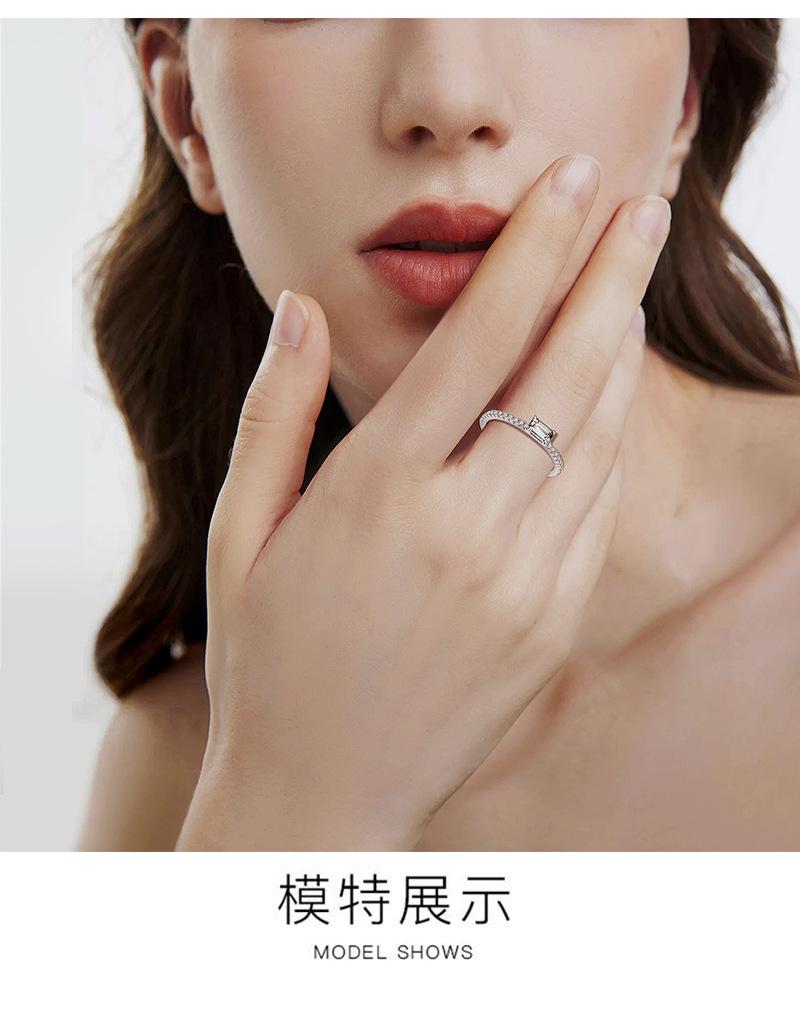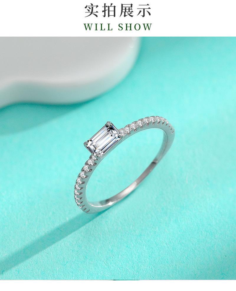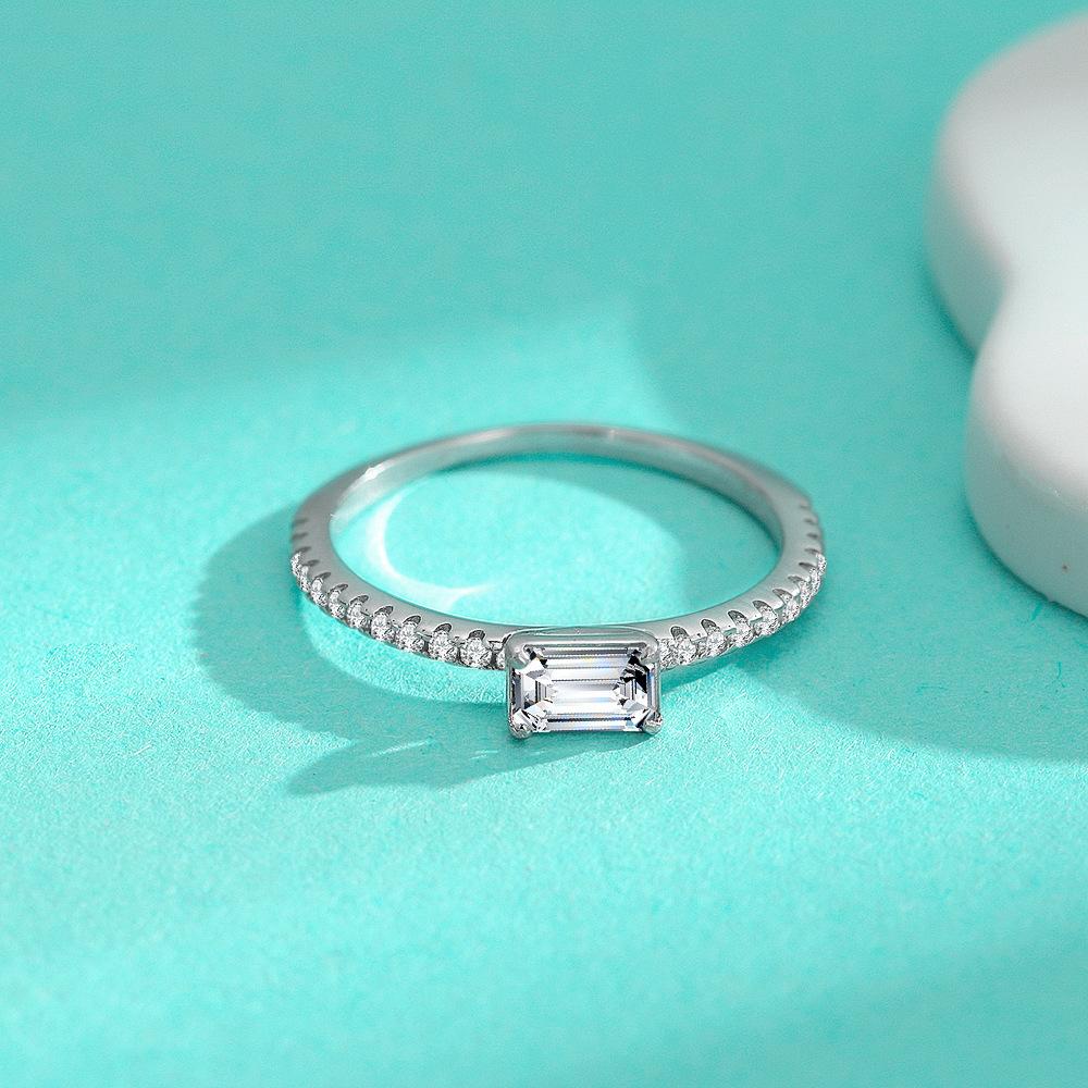 Anillo de moissanita de plata esterlina S925 transfronterizo de corte esmeralda largo de 4 x 6, pequeño y exquisito anillo femenino de moda Joker