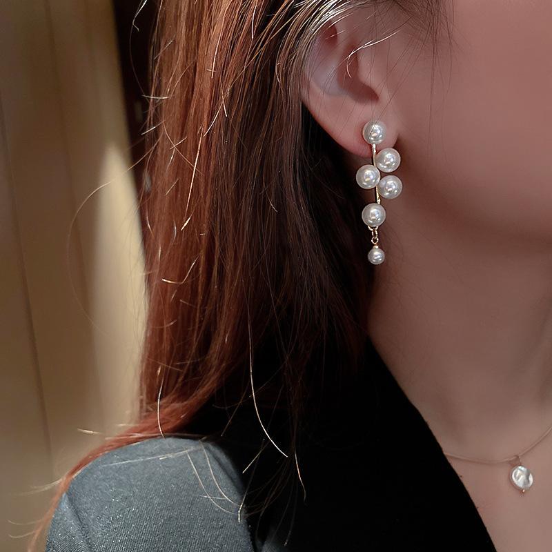 Compra Pendientes de perla con alfiler de plata 925, pendientes sencillos personalizados de moda de Corea del Sur Dongdaemun, pendientes con diseño elegante de celebridades de Internet. al por mayor en Joom.pro