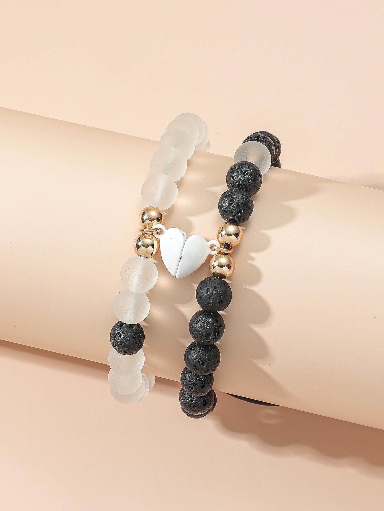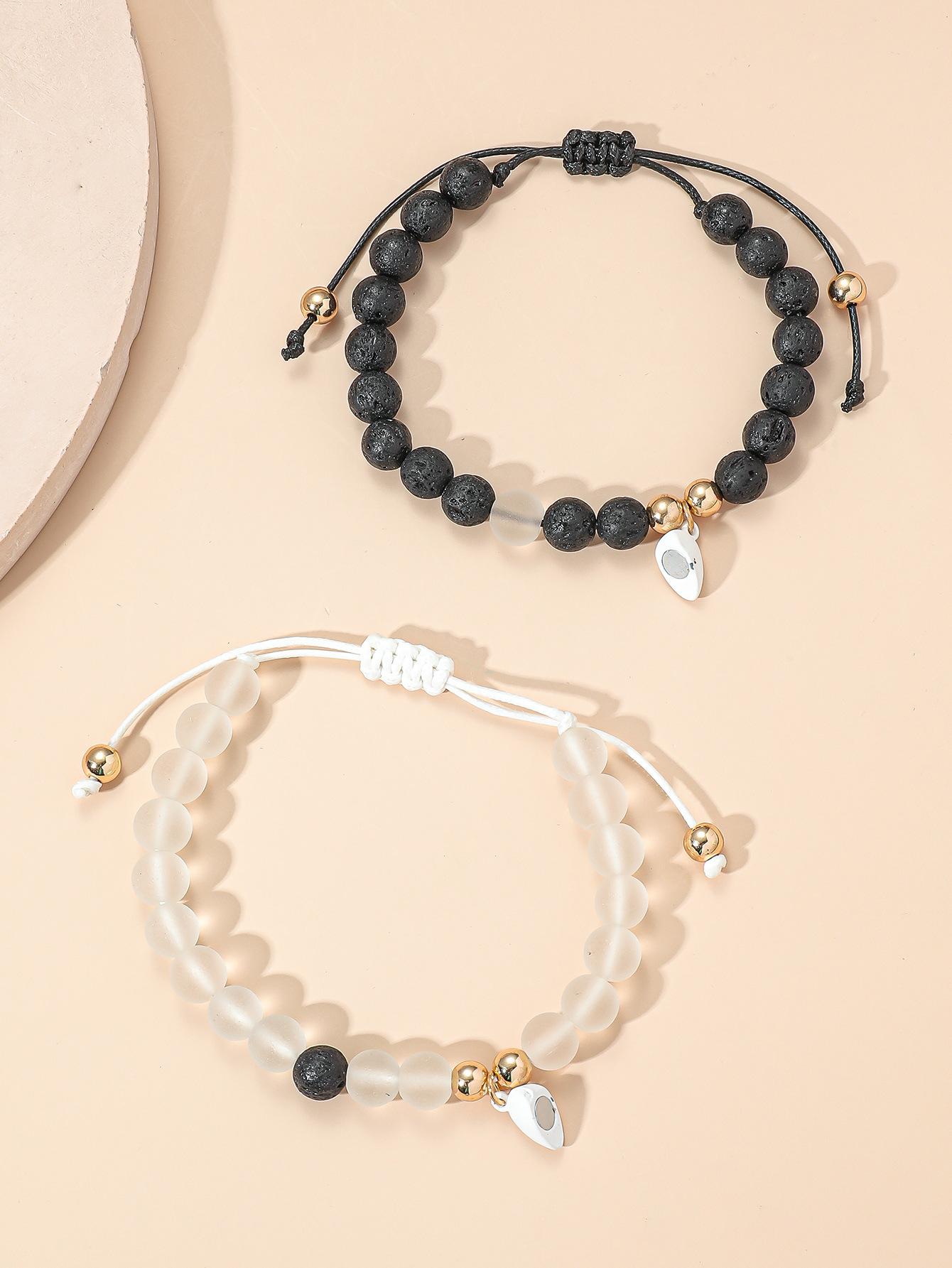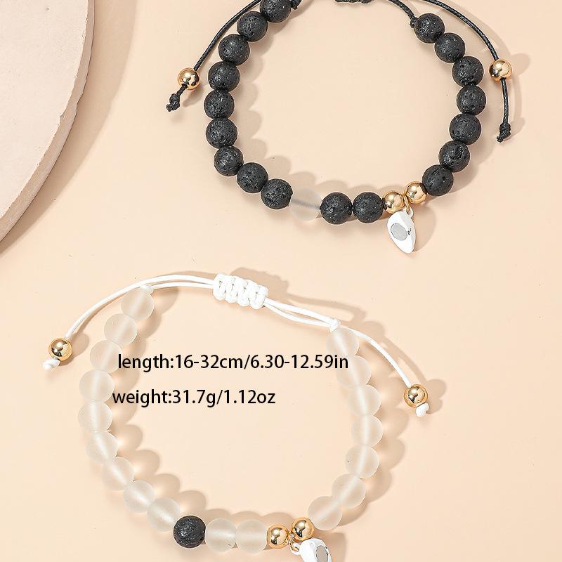 Pulsera de Mano Tejida con Diseño Original de Personalidad de Venta Caliente Europea y Americana, Cuentas Blancas y Negras, Pulsera de Mano para Pareja
