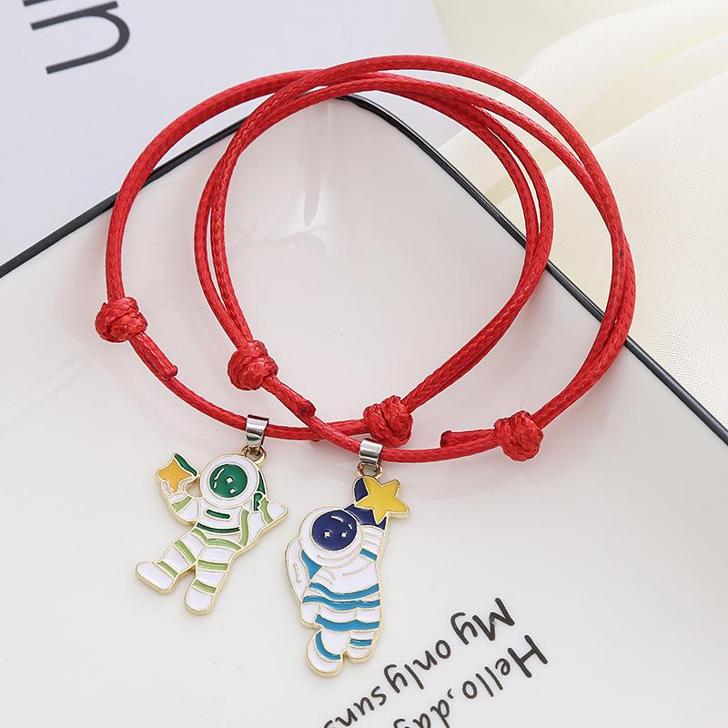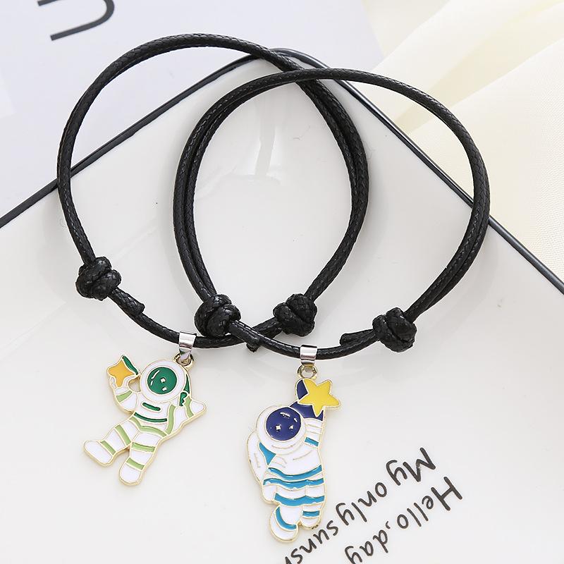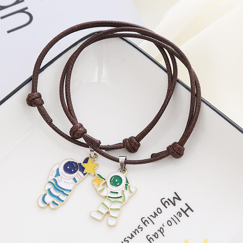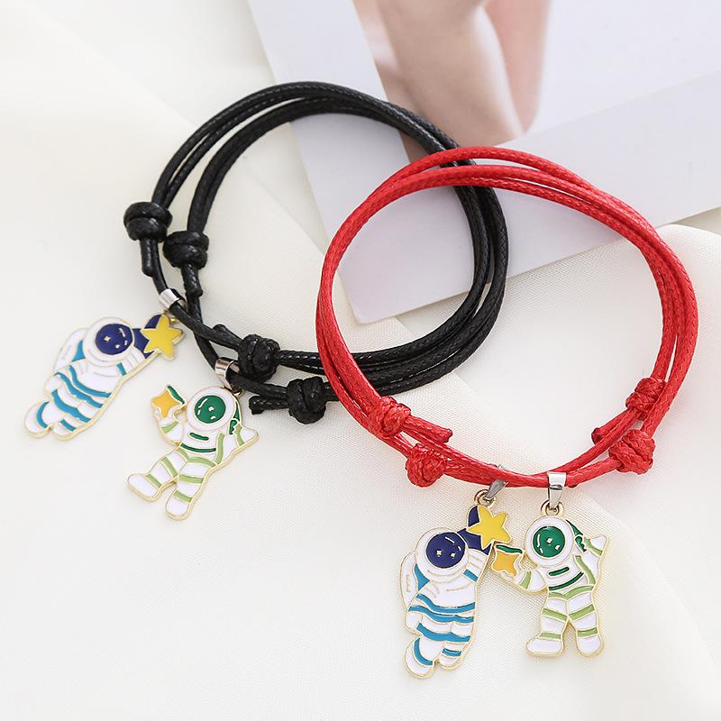 [paquete de 2] pulsera de pareja de astronautas personalidad pulsera para hombre y mujer pulsera tejida a mano ajustable regalo