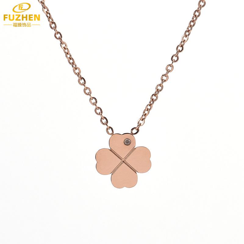 Collar con colgante de diamantes de temperamento de celebridad de internet, simple, con candado de trébol de la suerte, cadena para clavícula de oro titanio, collar de trébol de cuatro hojas de acero inoxidable para mujer