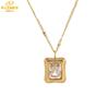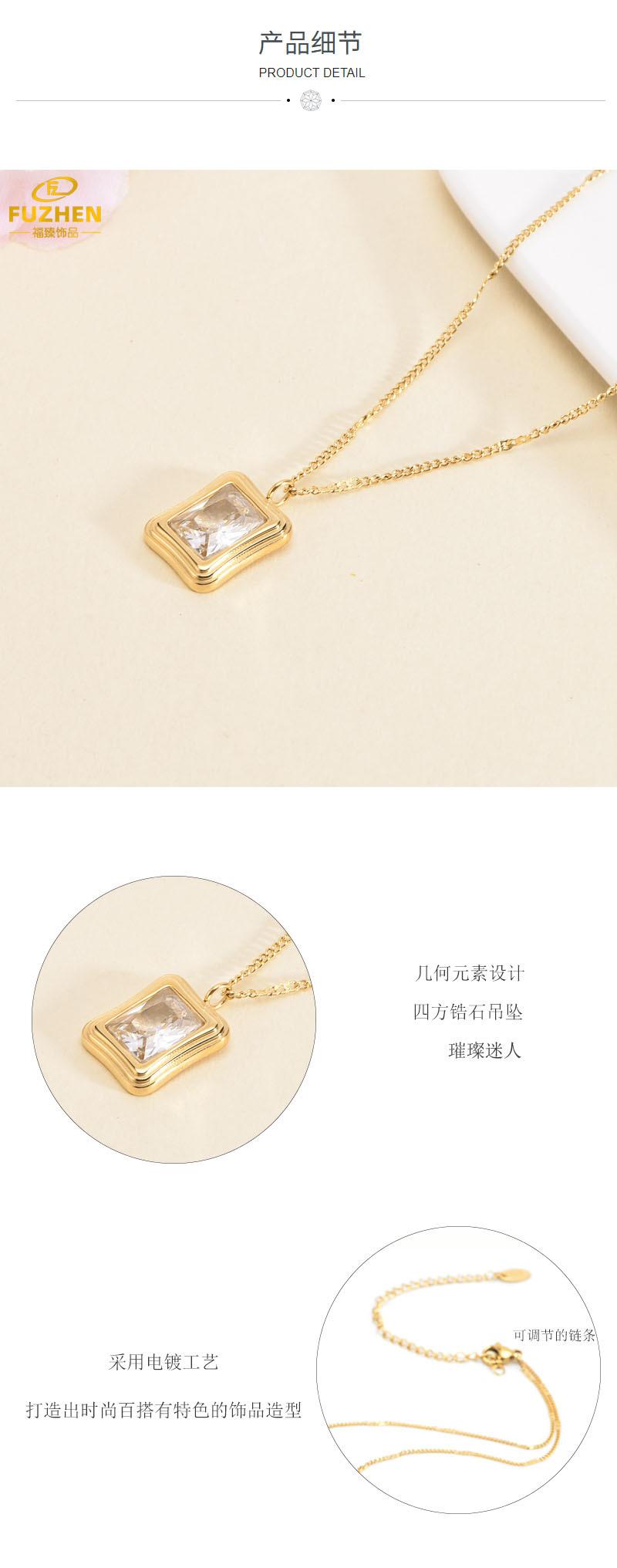 Colgante de circonita con diamantes de garra de moda, diseño de nicho, cadena de clavícula de circonita ligera de lujo, collar de acero de titanio que combina con todo para otoño e invierno.