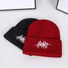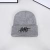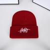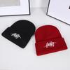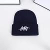 Gorro de punto con letras bordadas de estilo japonés para mujer, cálido, transpirable, combinable con todo, de lana negra, para otoño e invierno, para hombre.
