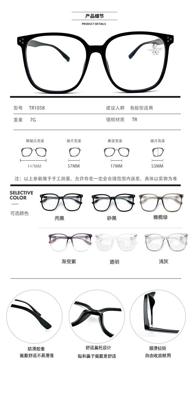 Gafas TR90 con montura anti-luz azul para estudiantes, montura redonda moderna de moda, montura grande, con diseño de celebridades en línea, Little Red Book