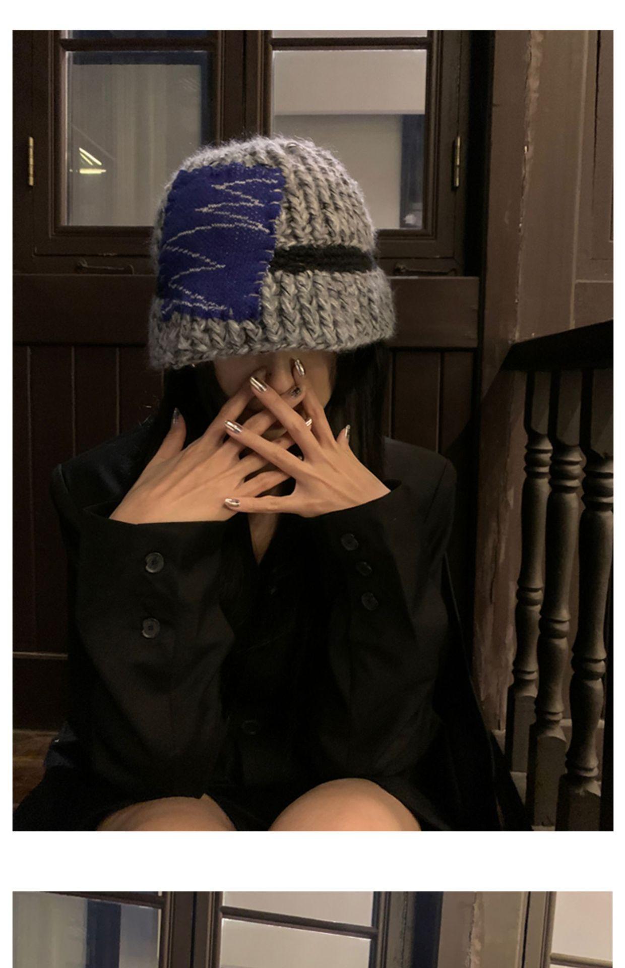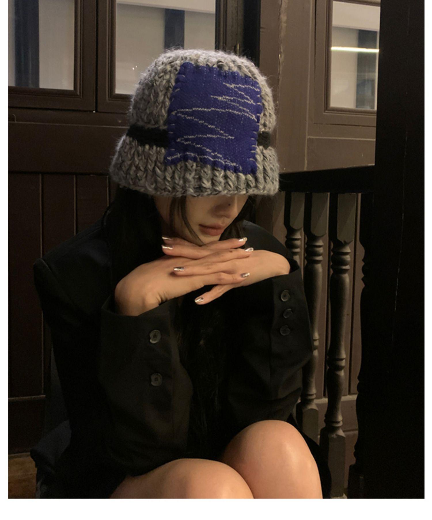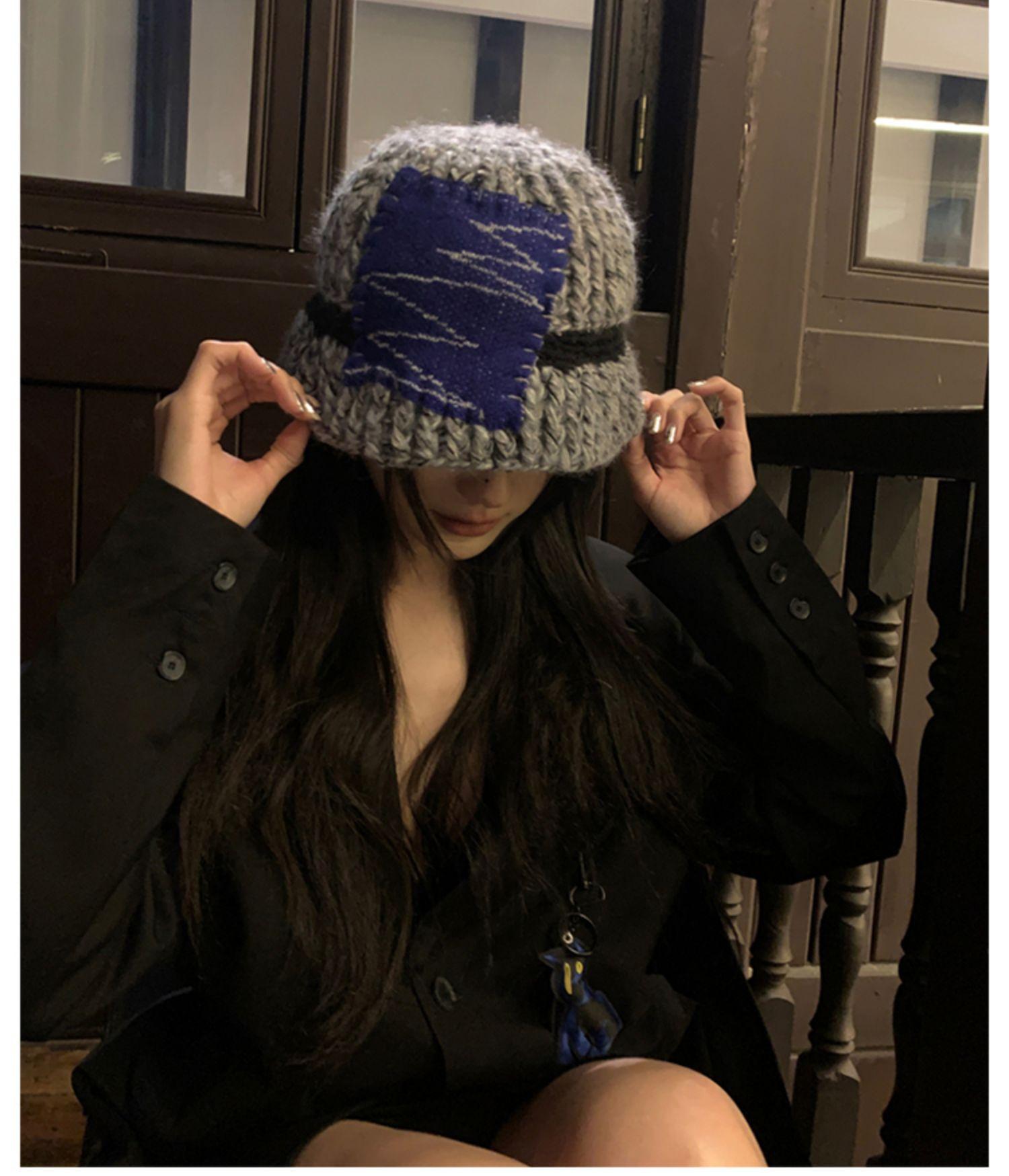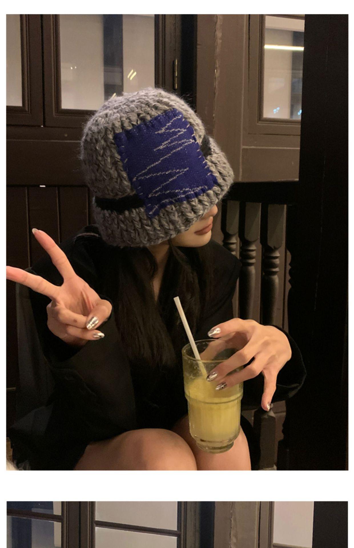 Gorro de pescador de lana gruesa con parche hecho a mano de Corea del Sur, para mujer, de otoño e invierno, estilo retro, pequeño y cálido, para lavabo, gorro frío