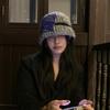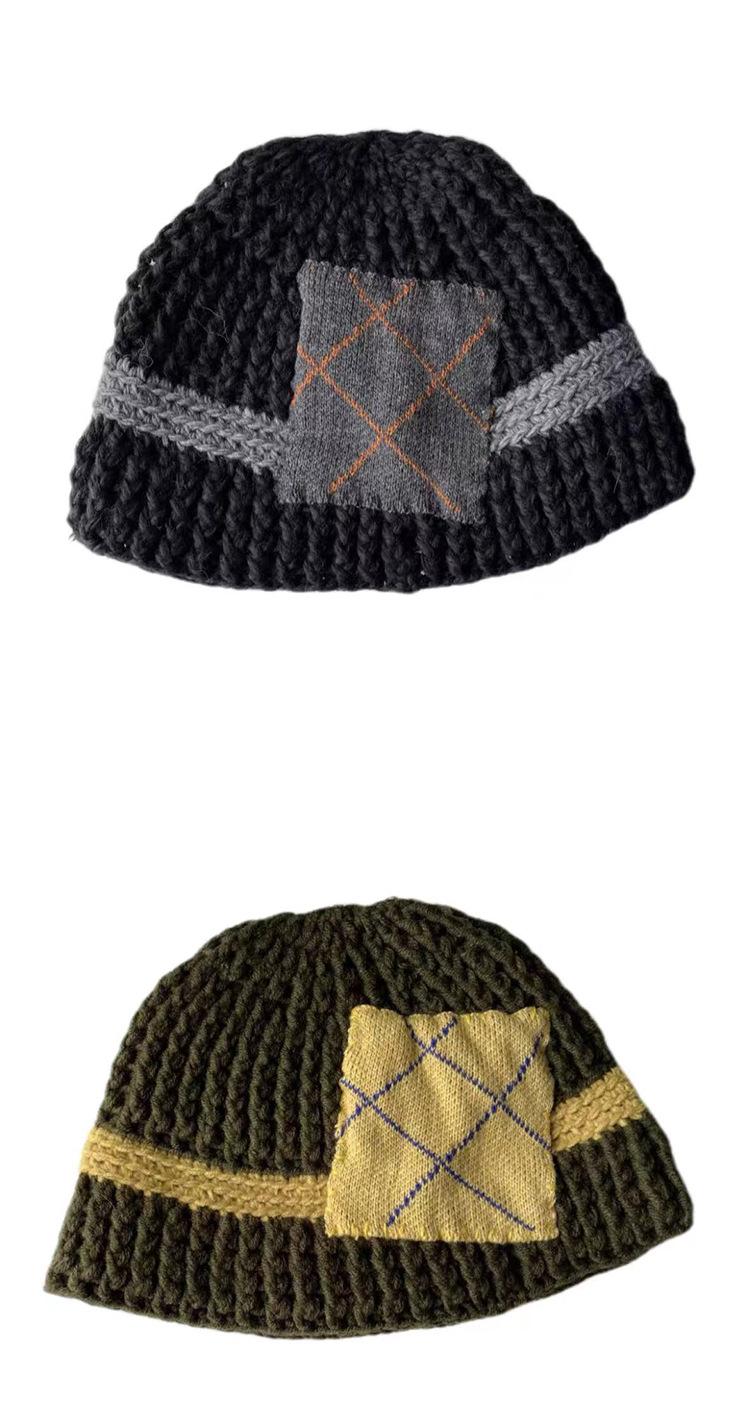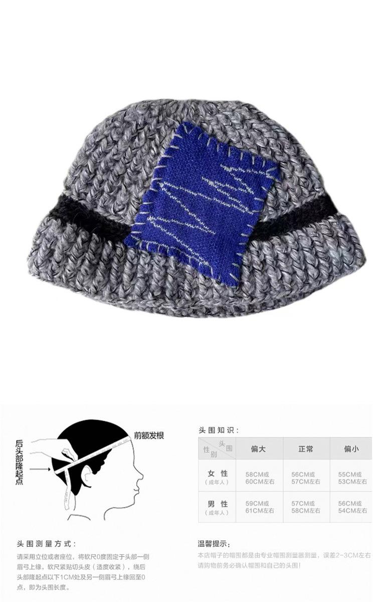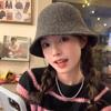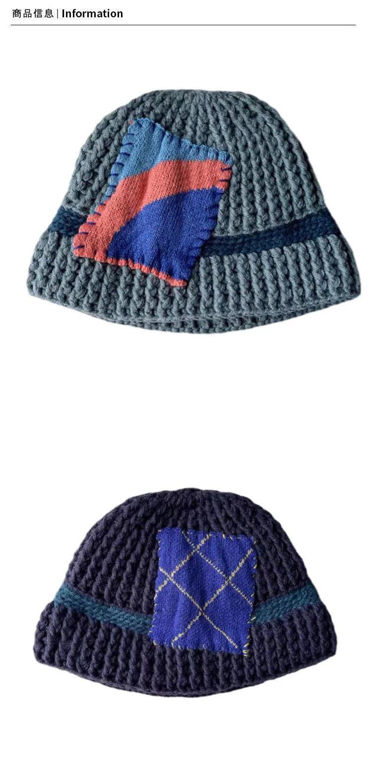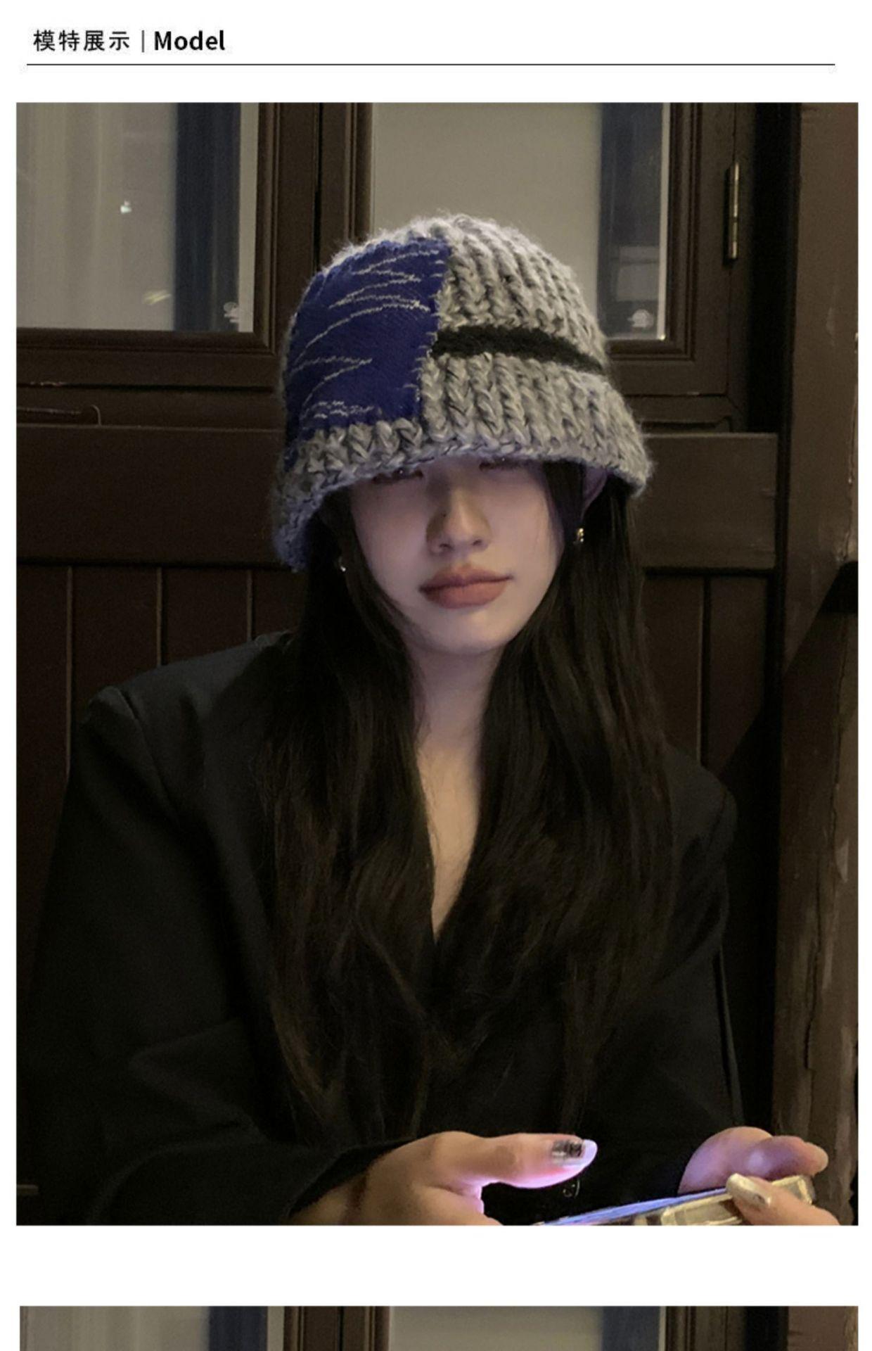 Gorro de pescador de lana gruesa con parche hecho a mano de Corea del Sur, para mujer, de otoño e invierno, estilo retro, pequeño y cálido, para lavabo, gorro frío