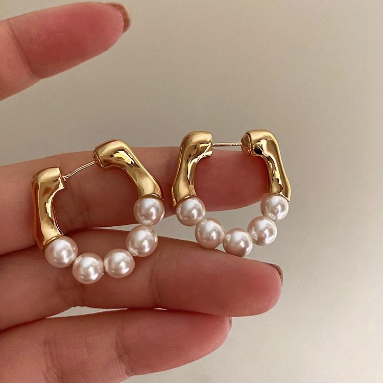Aretes Miss Nice Vintage Perla Francesa Diseño Personalizado Lujo Ligero Simple Aro de Oreja Delantero y Trasero Moderno