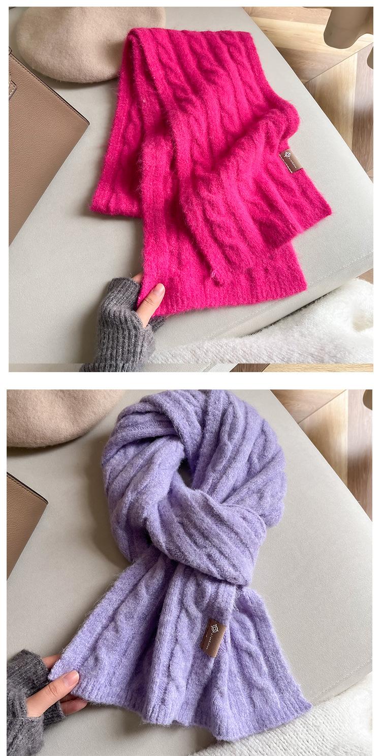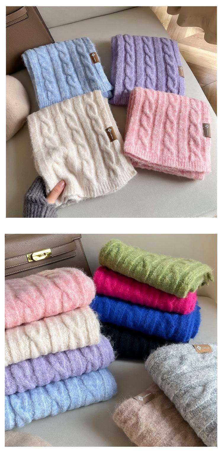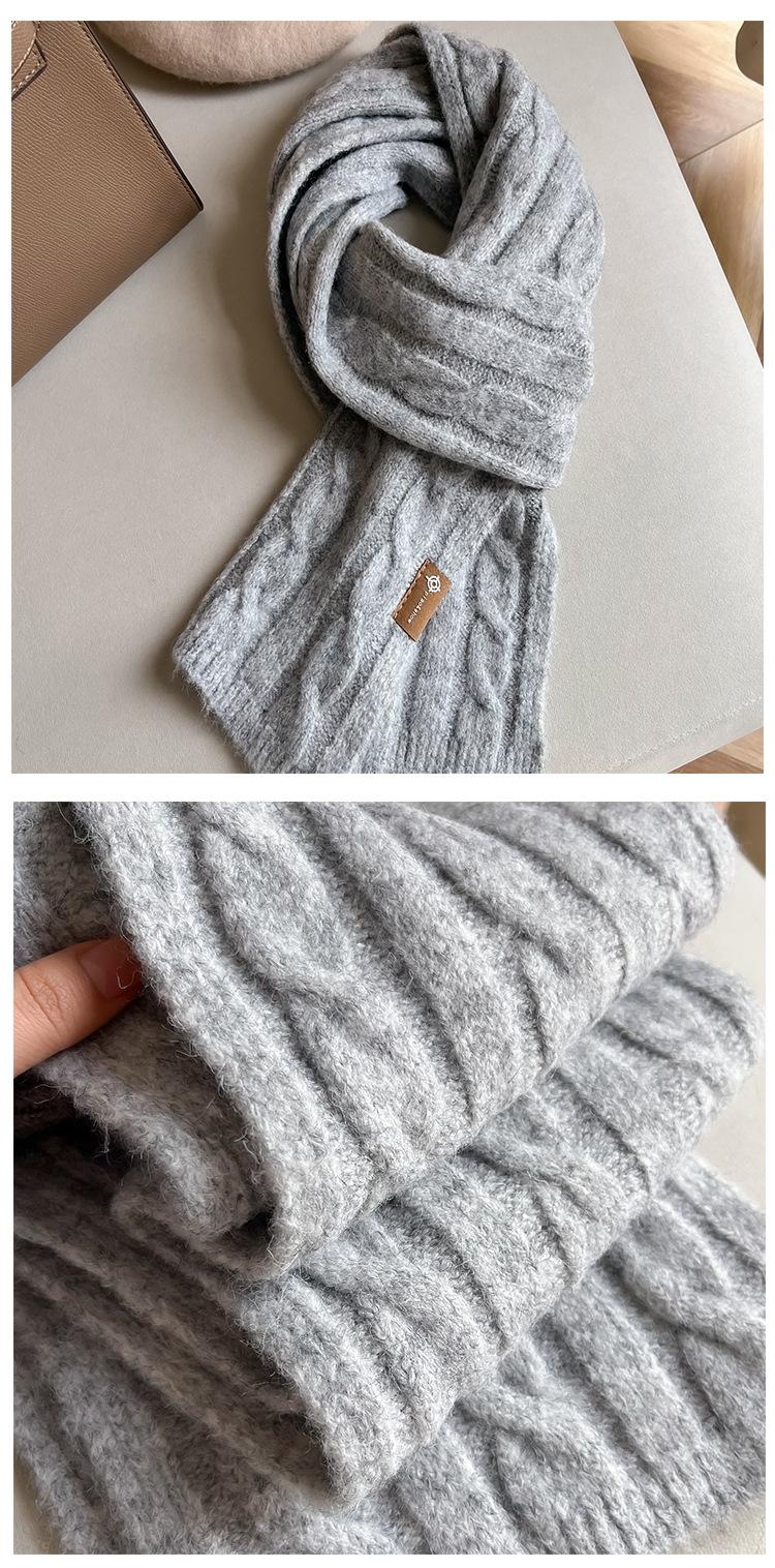 Bufanda de lana tejida de color liso 2024 para mujer, estilo coreano de invierno, gruesa y cálida, color blanco de alta calidad, para hombre y mujer.