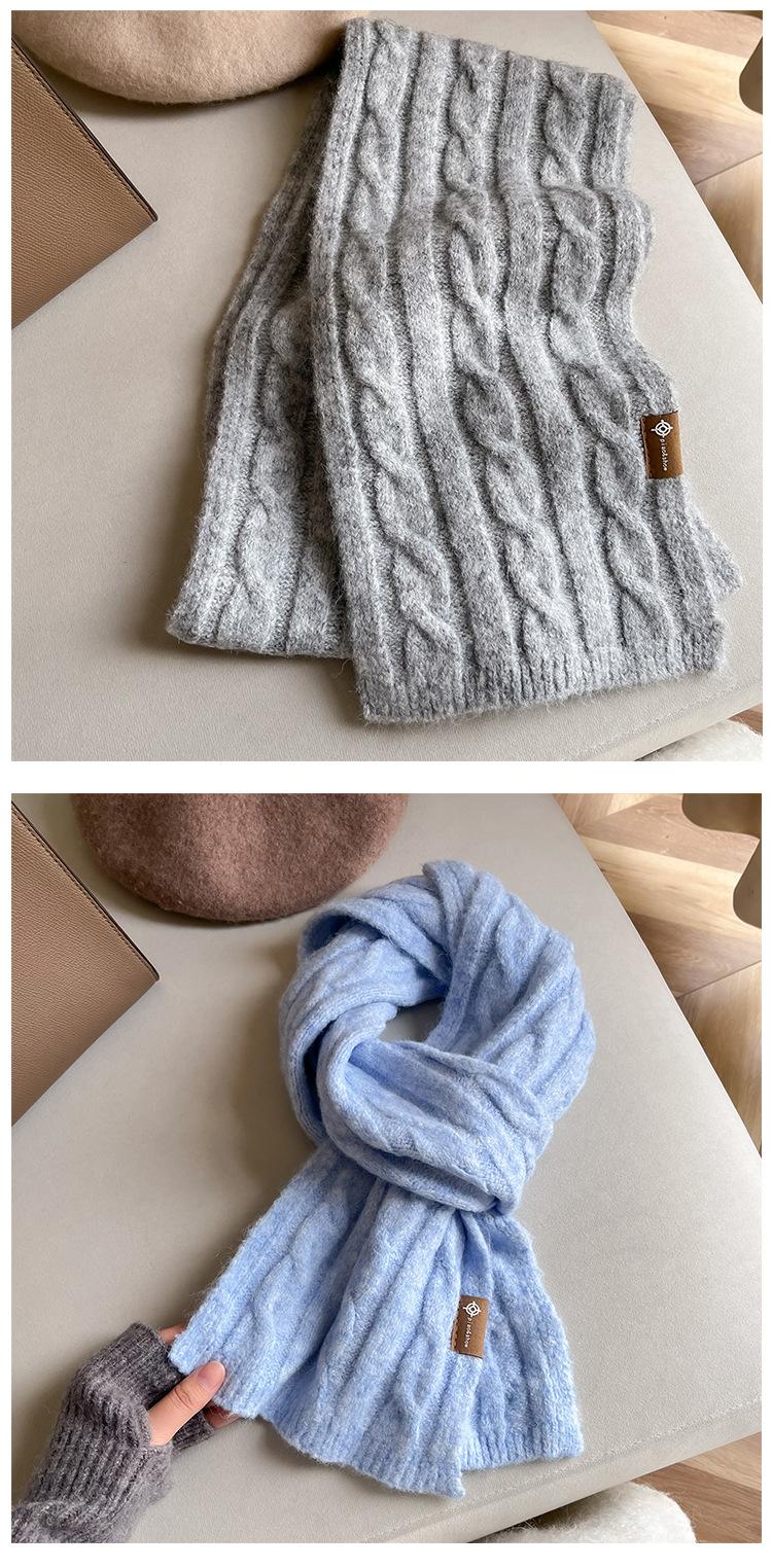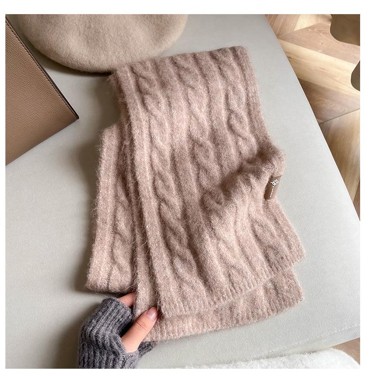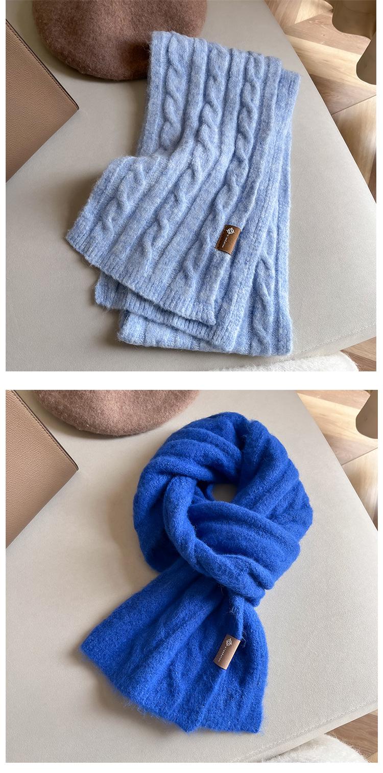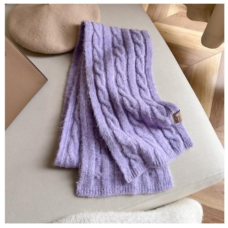 Bufanda de lana tejida de color liso 2024 para mujer, estilo coreano de invierno, gruesa y cálida, color blanco de alta calidad, para hombre y mujer.