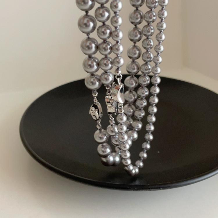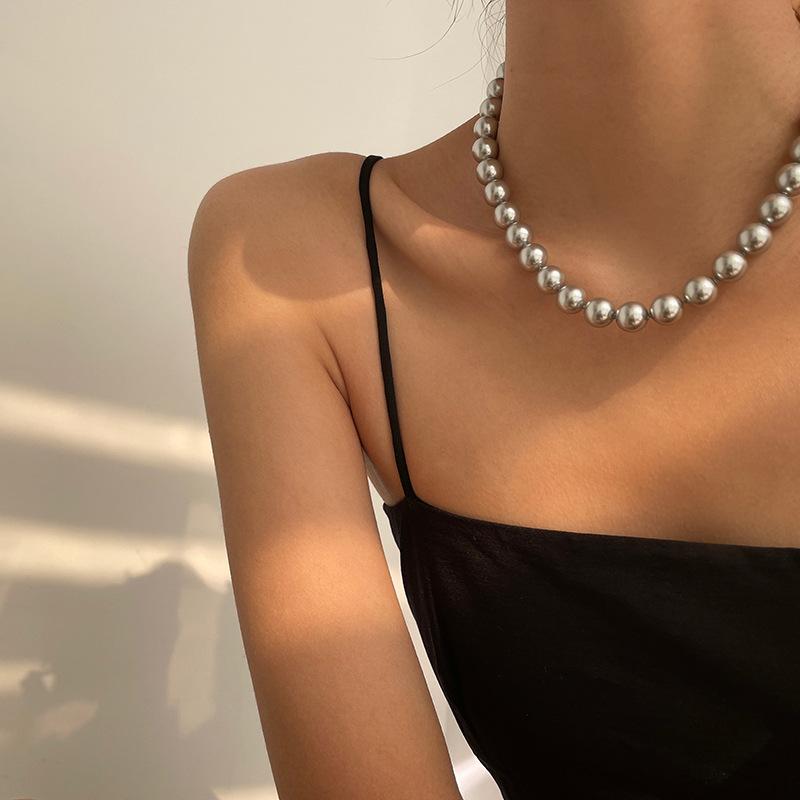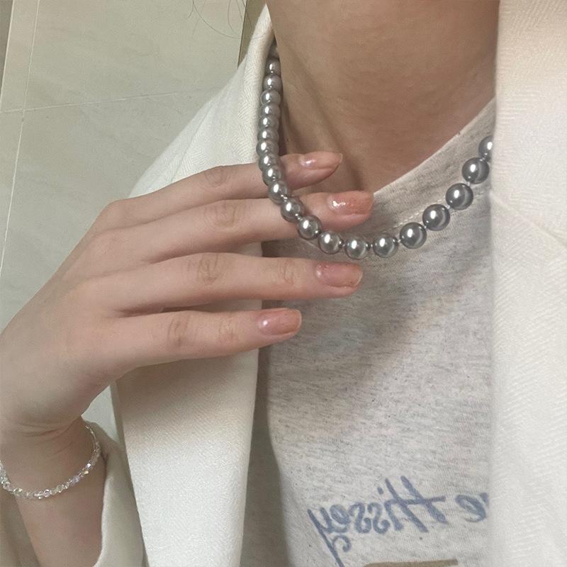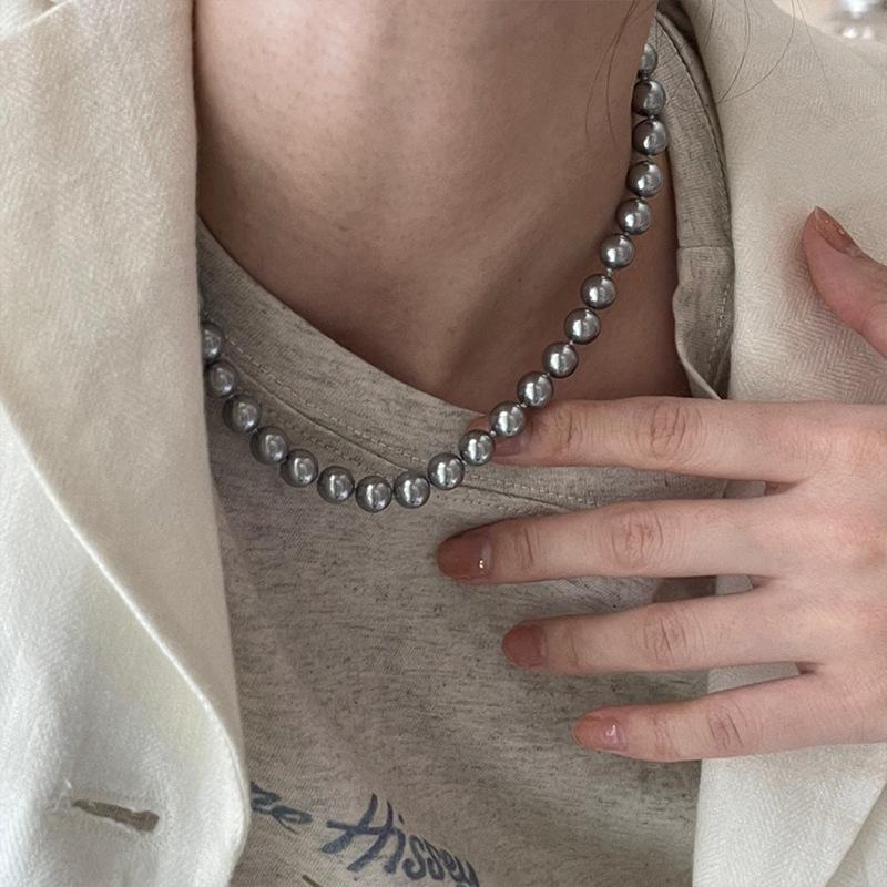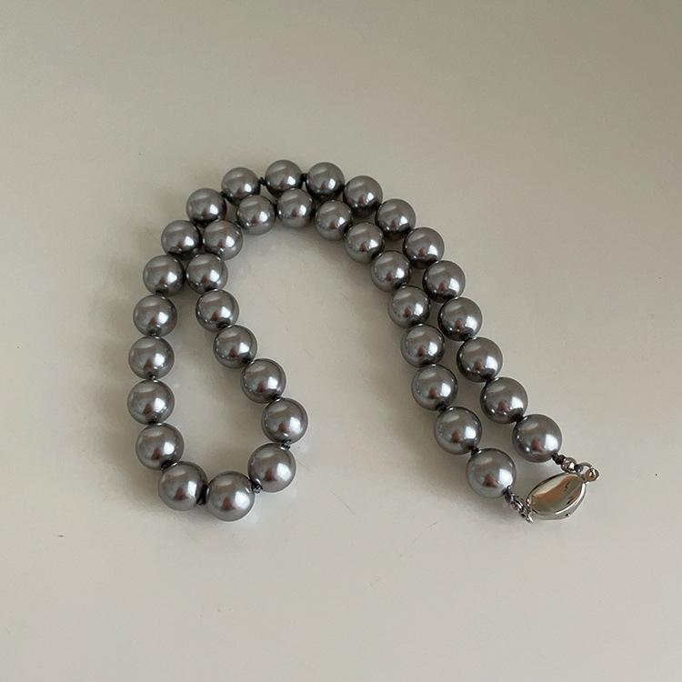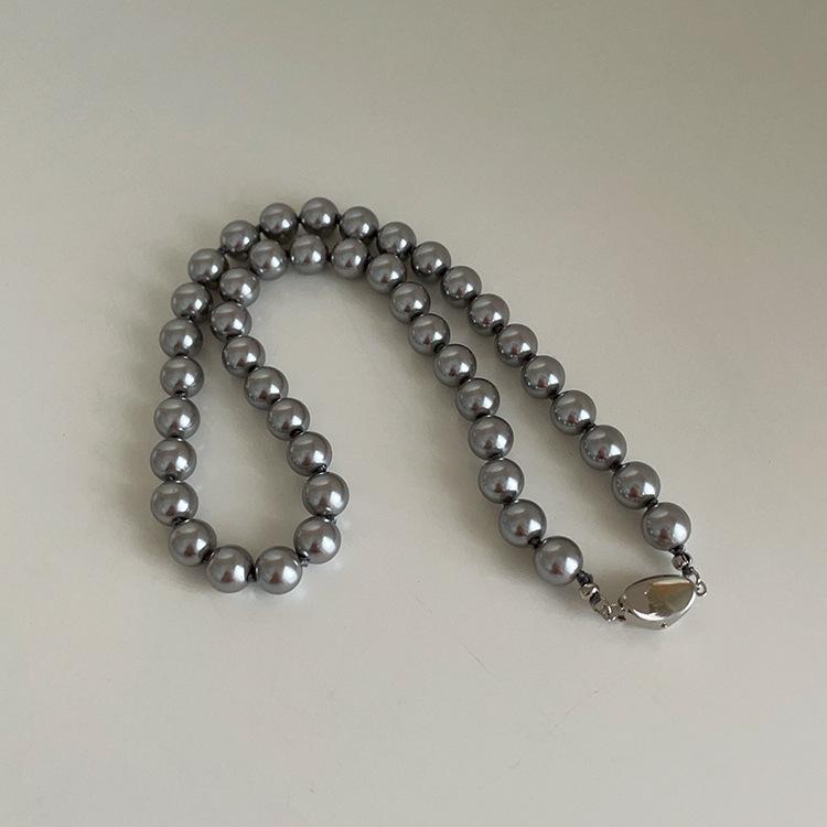 Collar con hebilla de lingote de perla gris de alta gama para mujer, estilo coreano, estilo retro, simple, cadena para el cuello y la clavícula.