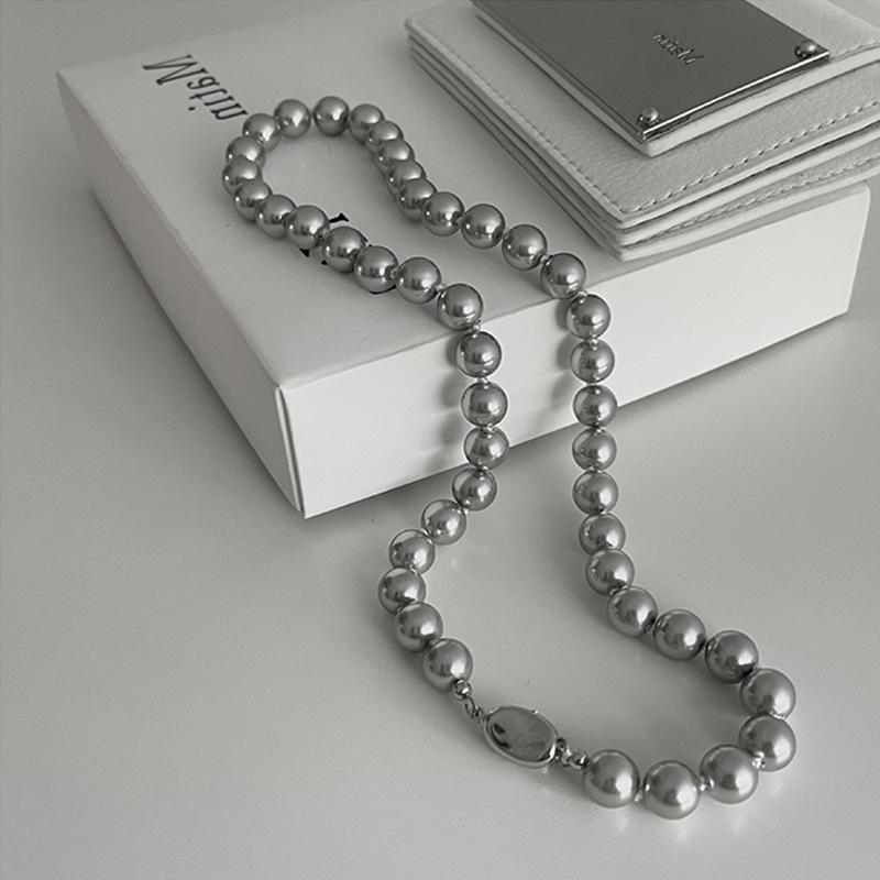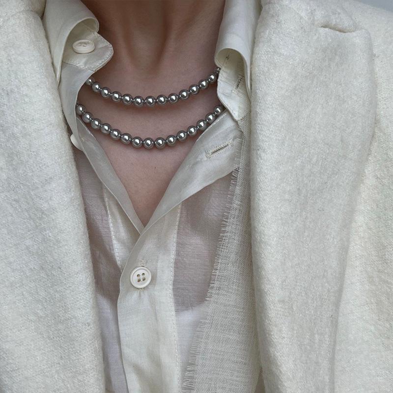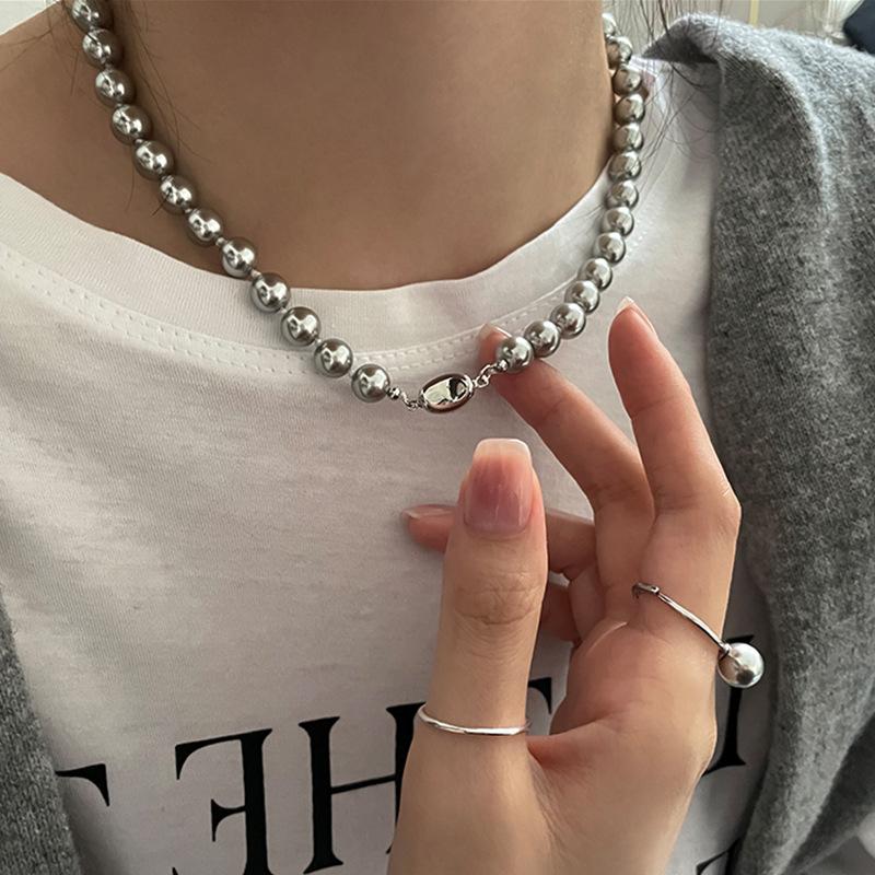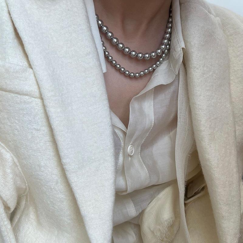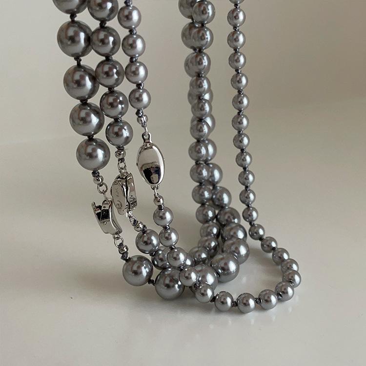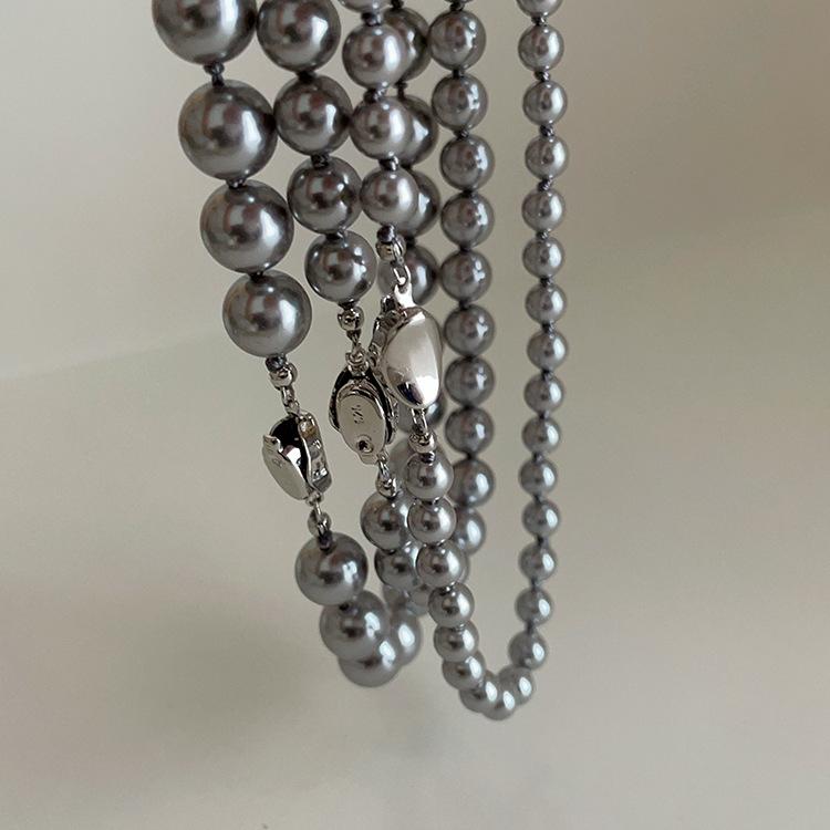 Collar con hebilla de lingote de perla gris de alta gama para mujer, estilo coreano, estilo retro, simple, cadena para el cuello y la clavícula.