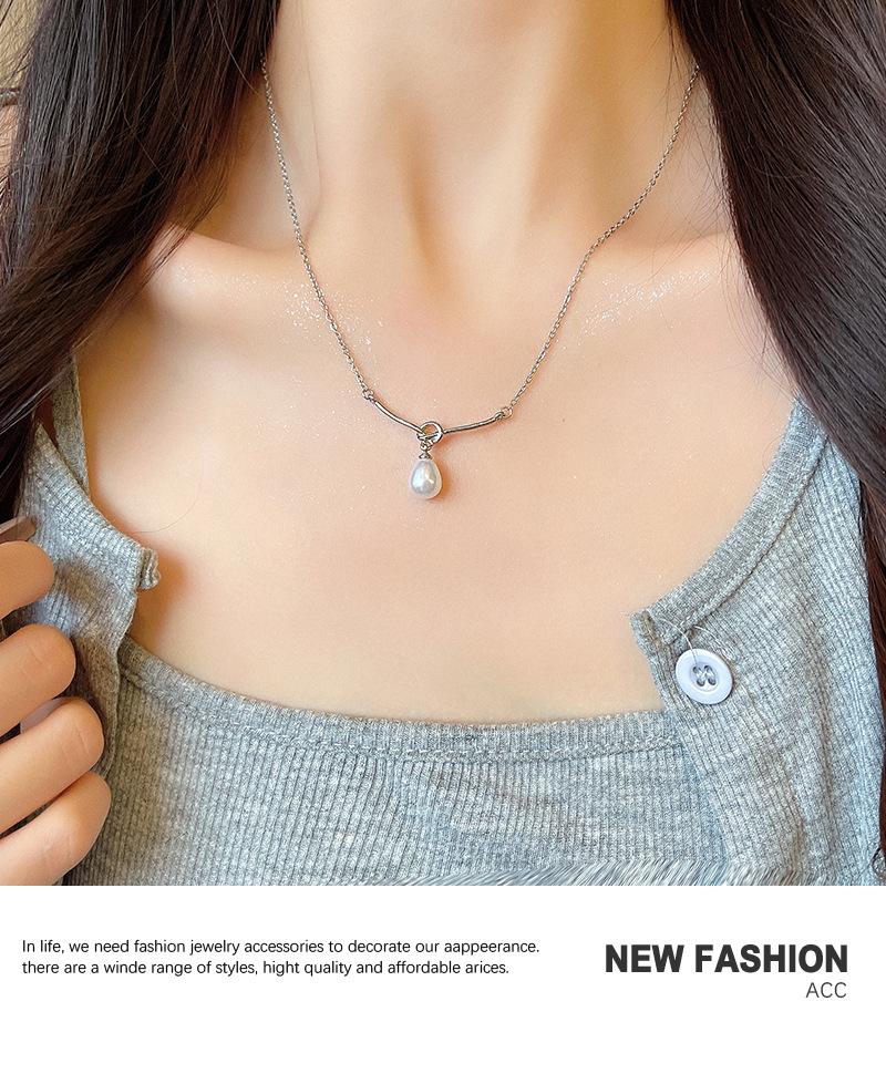 Collar de nudo de perla francesa para mujer, diseño de nicho, collar retro, lujo ligero, temperamento de alta gama, cadena de clavícula versátil