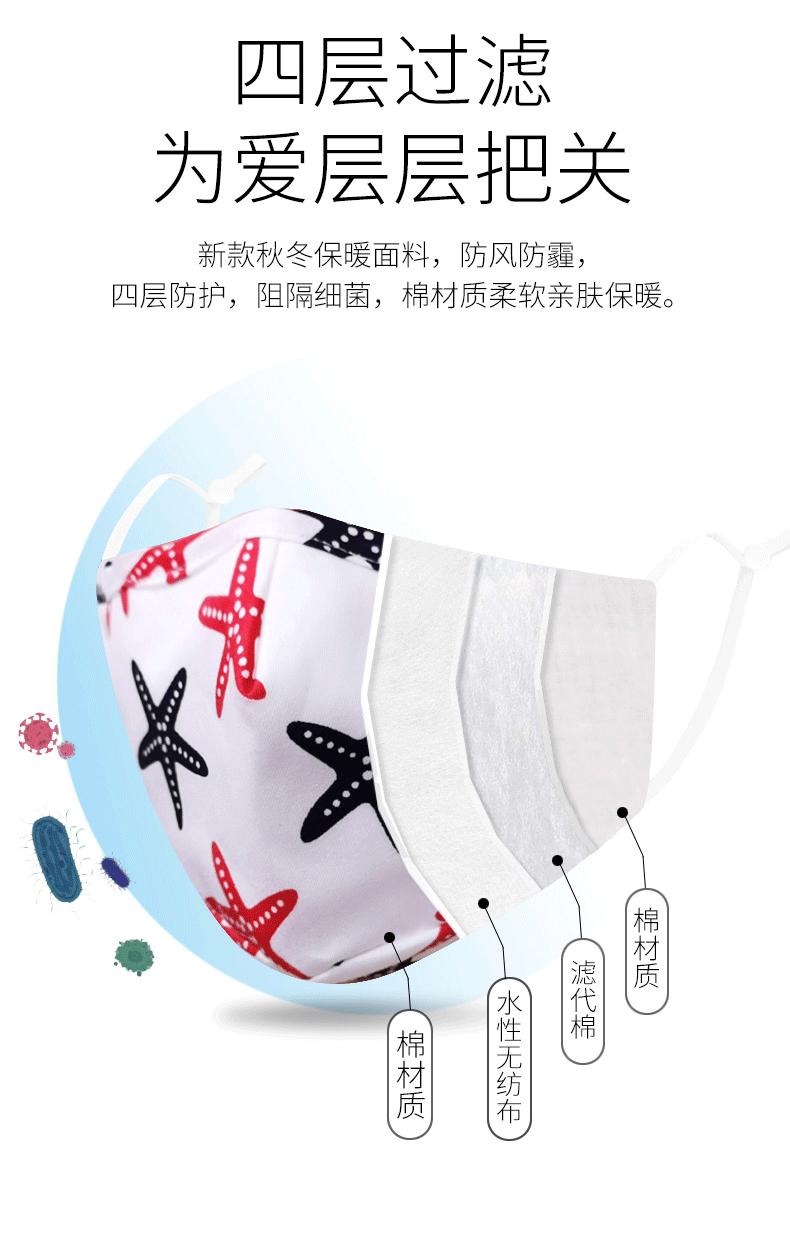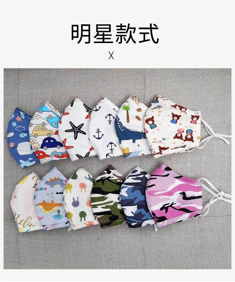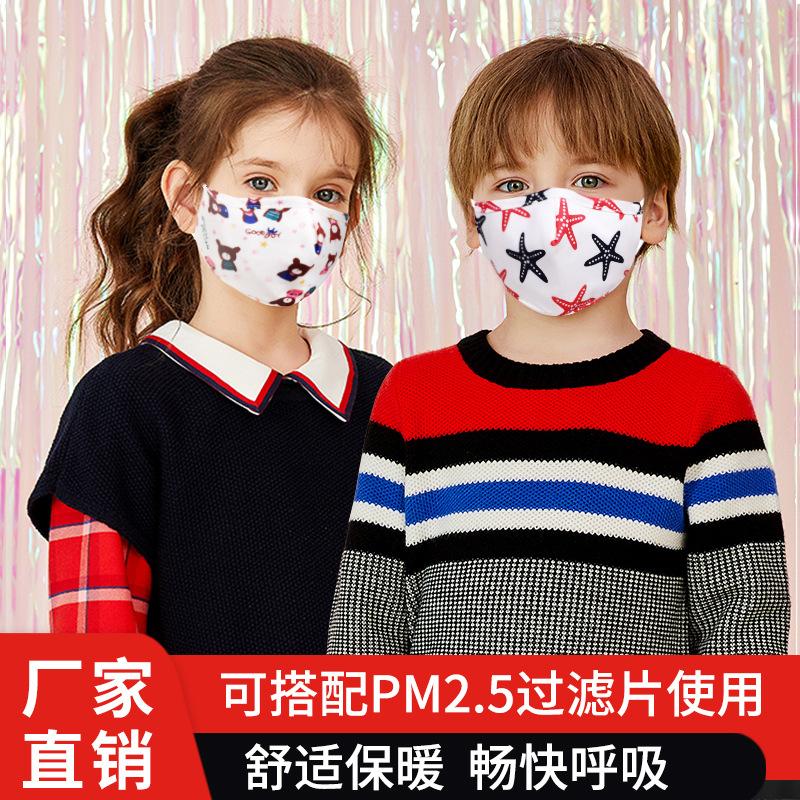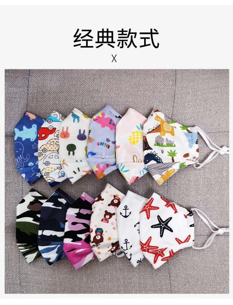 Mascarilla de Algodón para Niños con Filtro Pm2.5, Espesor de 3 Capas, Tridimensional para Colgar en las Orejas, Lavable, Estampado de Dibujos Animados, Mascarilla Cálida