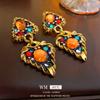 Pendientes geométricos de perlas retro francesas, pendientes de temperamento de moda exagerada, pendientes de lujo ligeros de nicho de alta gama, venta al por mayor para mujeres