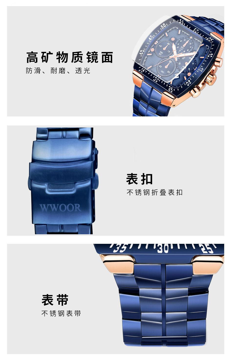 Reloj de cuarzo informal Wdoor con correa de acero de siete pines, resistente al agua, para hombre, con correa de acero, tendencia de comercio electrónico transfronterizo 8836