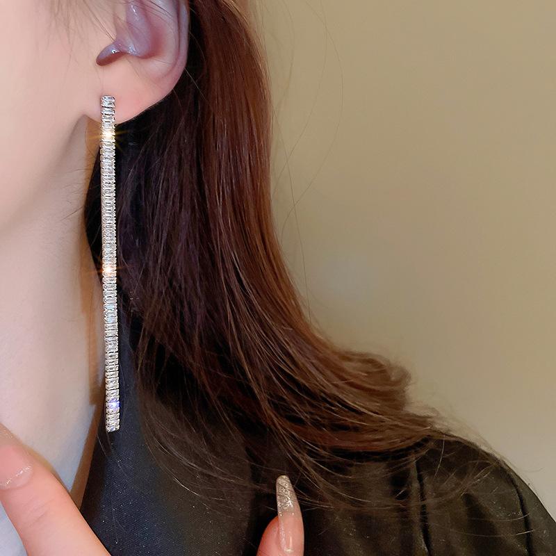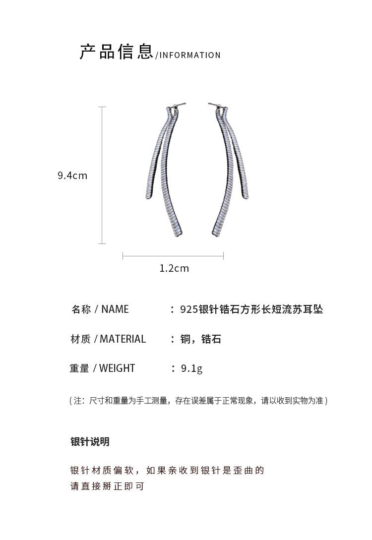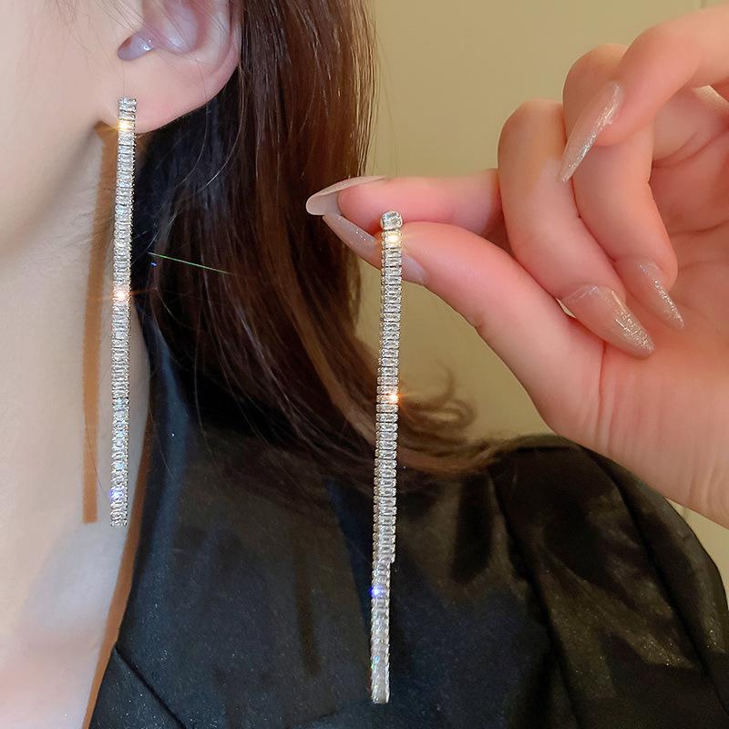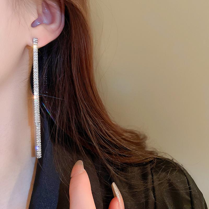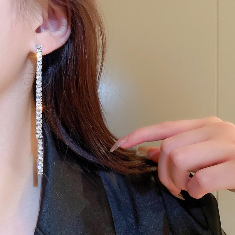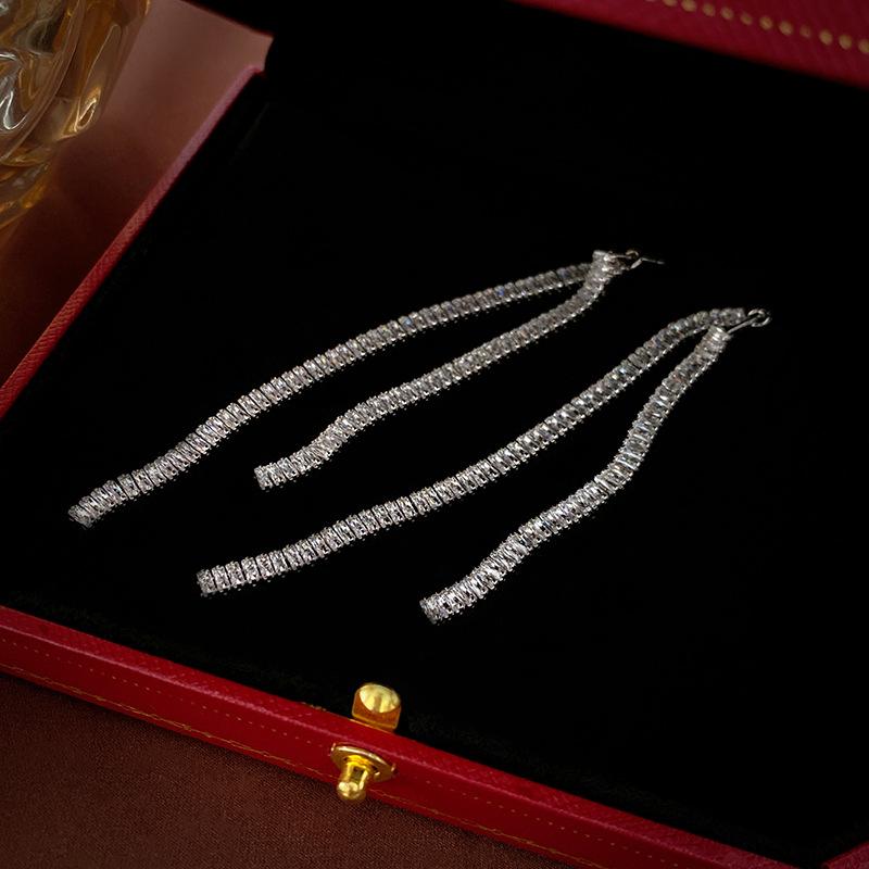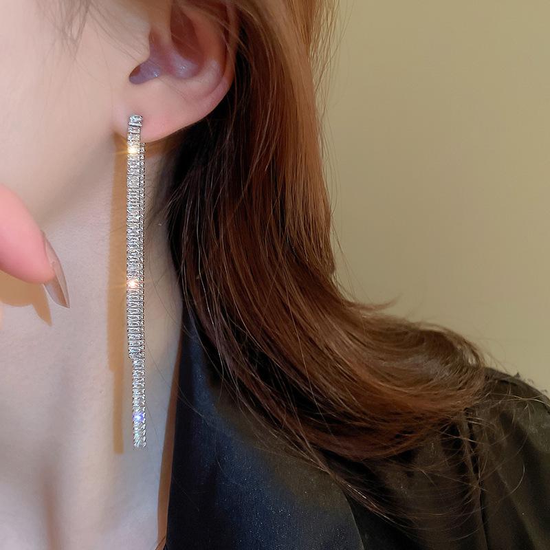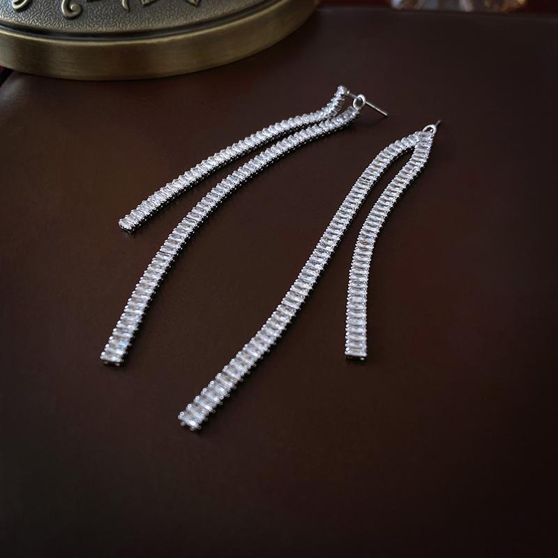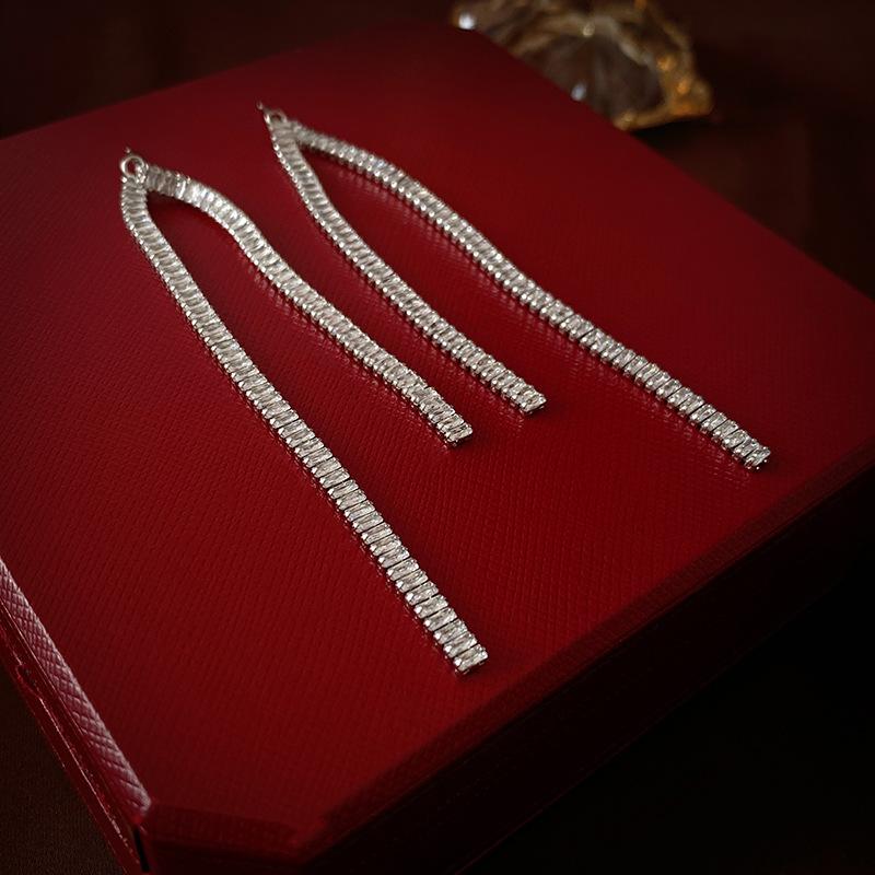 Aretes de Borla Largos y Cortos Cuadrados de Zirconia Estilo Lujo Ligero Aguja de Plata Moda Línea Simple Elegantes Aretes de Alta Gama para Mujer