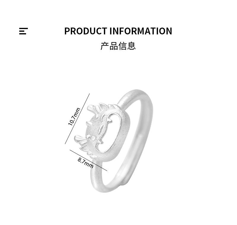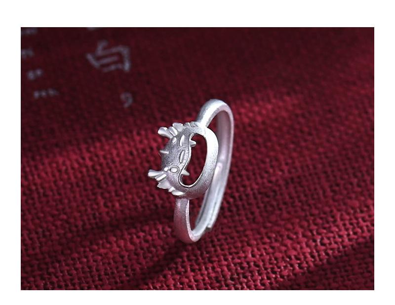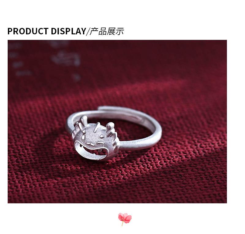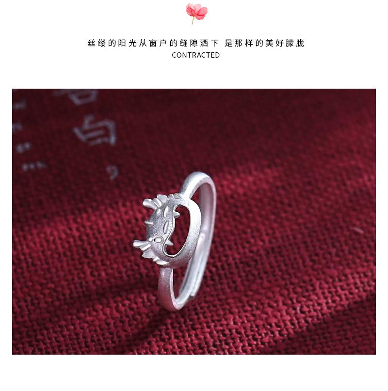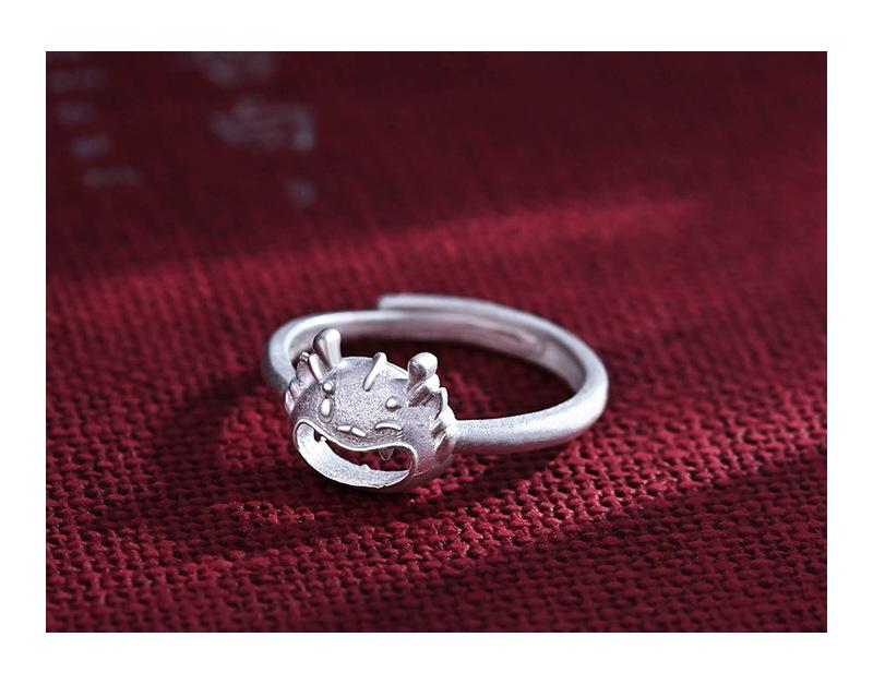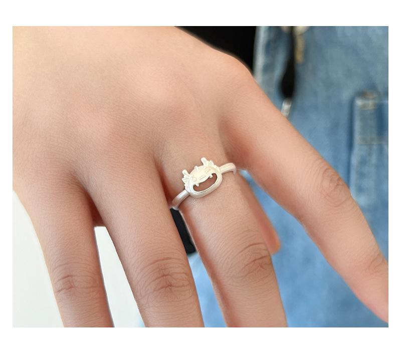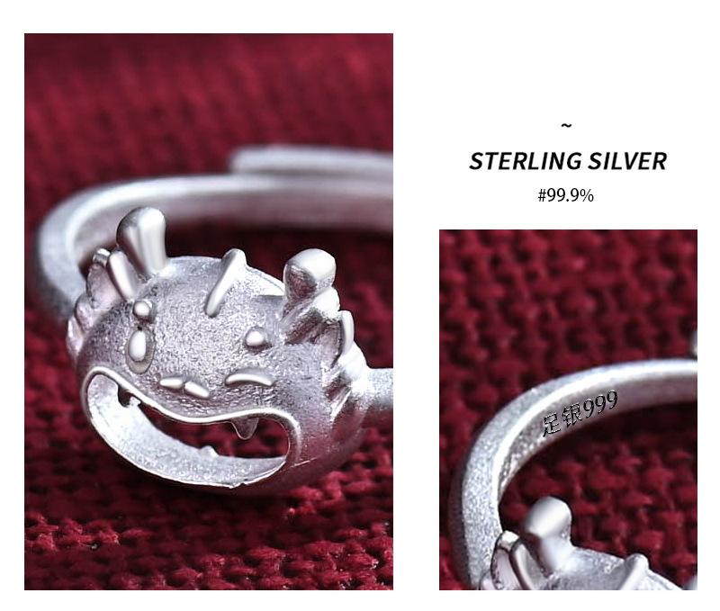 Anillo de dragón sonriente de plata esterlina S999 para mujer, diseño de nicho, ajustable, año del dragón, animal del año, anillo para el dedo índice