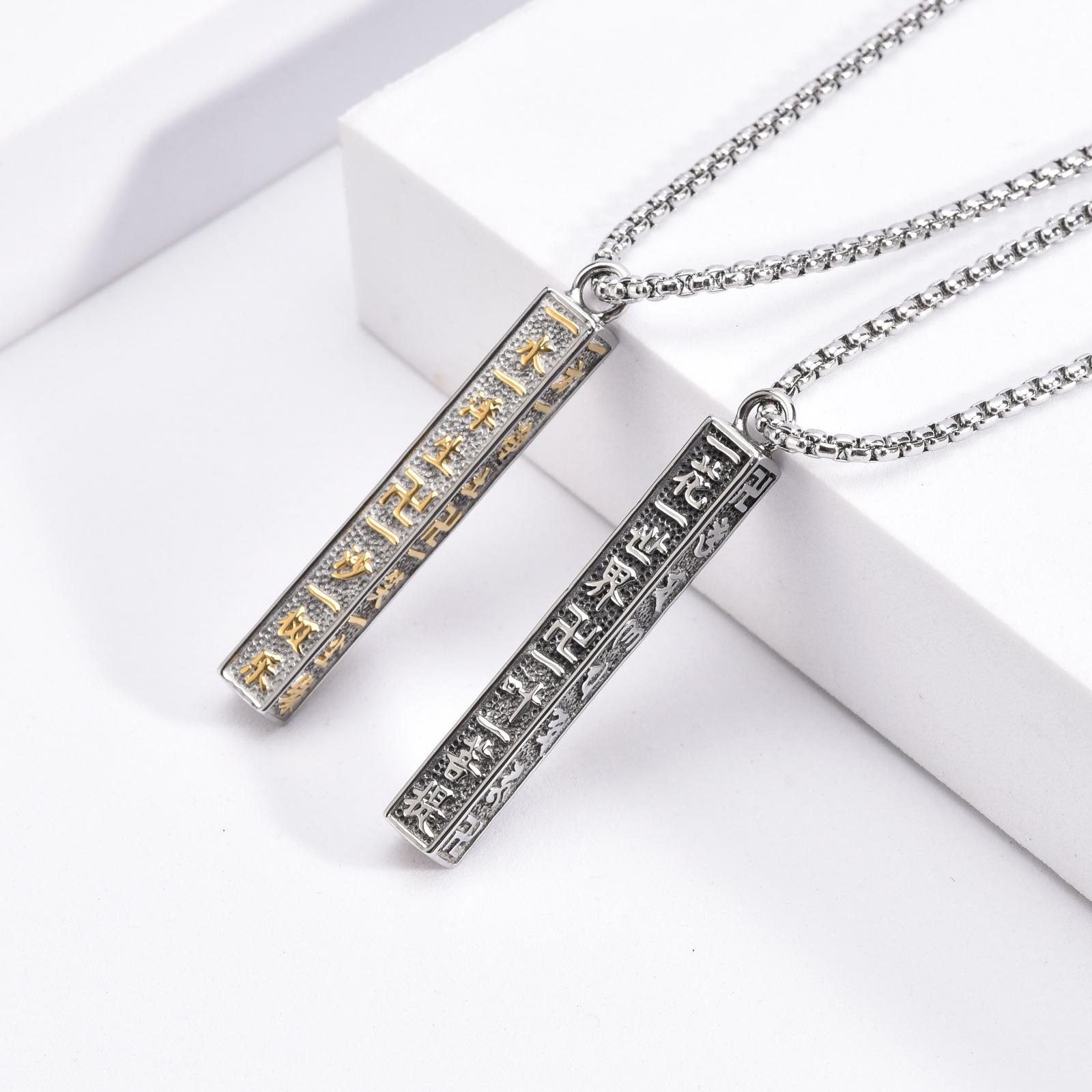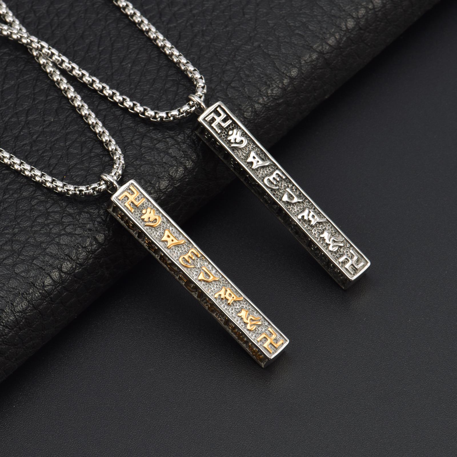 Colgante Retro Mantra Budista Bodhi de Seis Sílabas para Hombre, Collar Largo Dorado de Acero Inoxidable, Suministro de Fabricantes, Punto
