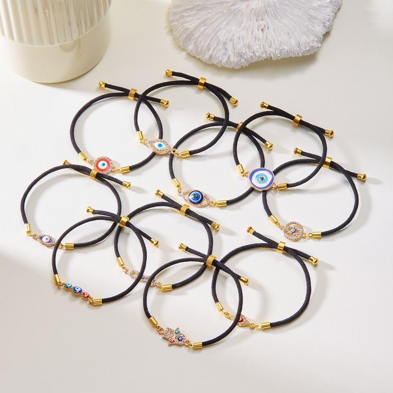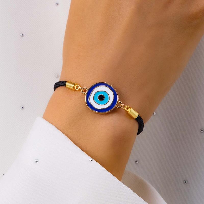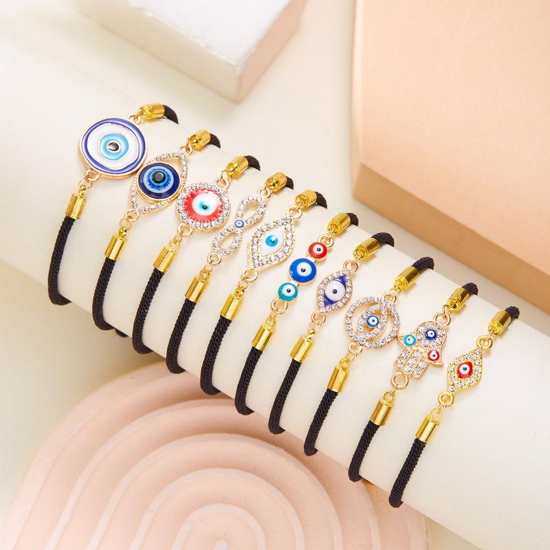 Especial Transfronterizo para Nueva Pulsera Turca de Ojo Azul Malvado Aleación Goteo de Aceite Ojo del Diablo Diamante Pulsera de Tirar