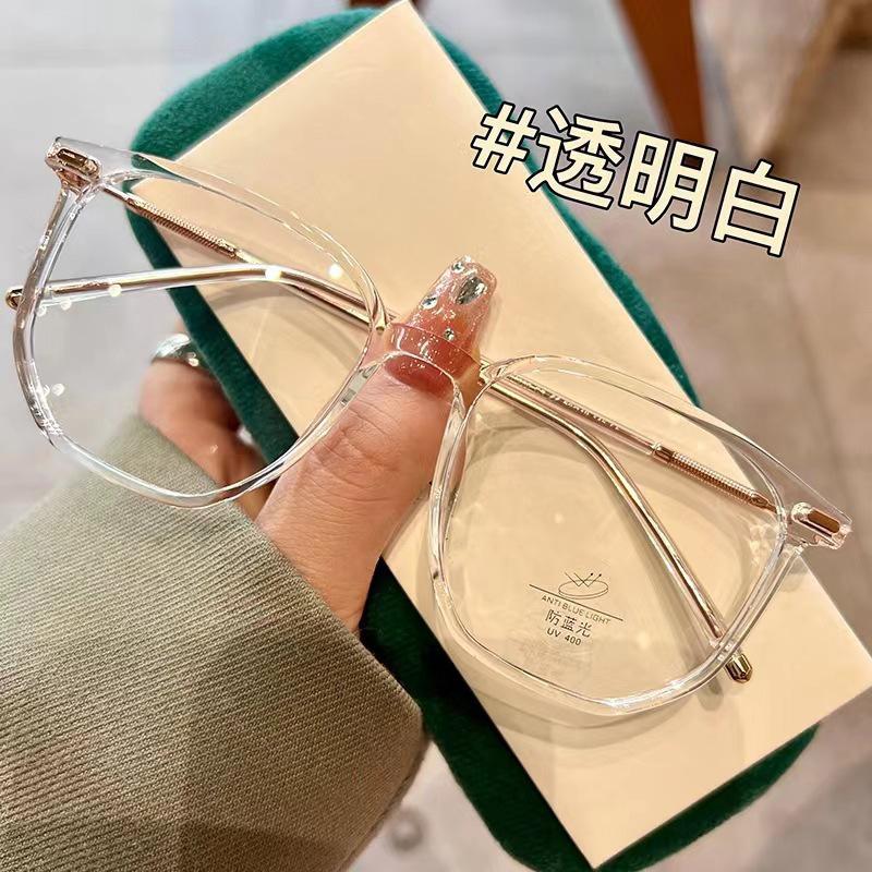 Nueva versión coreana 2023 de gafas retro con protección contra la luz azul, montura de red roja para mujer, maquillaje con personalidad, gafas de metal con espejo plano