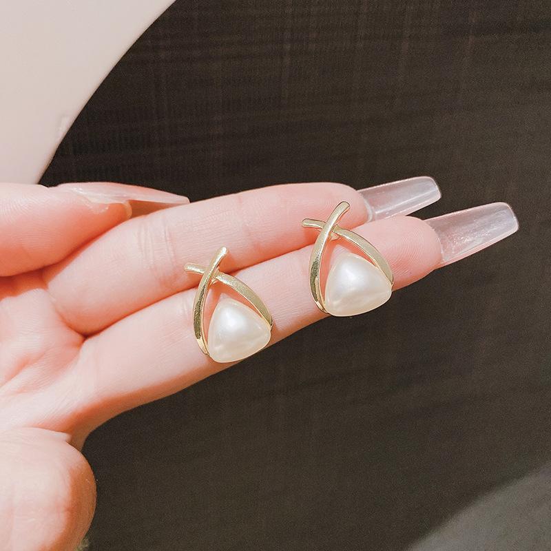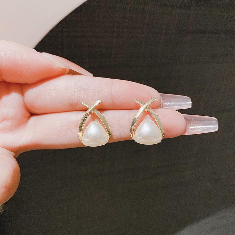 Compra Pendientes franceses sencillos, pequeños y exquisitos, de gran sensación de luz, de lujo, con forma de cruz y perla, pendientes sencillos tipo joker, joyería al por mayor en Joom.pro