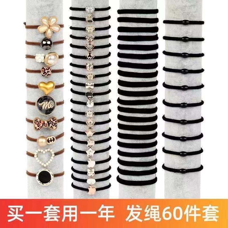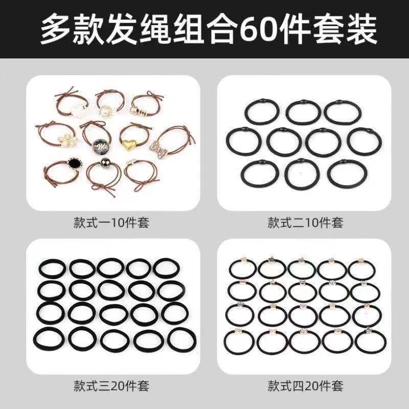 Set de 60 piezas Liga de goma estilo coreano Banda para el cabello sencilla Tocado Cuerda para atar Combinación no daña la banda para el cabello Cuerda para la cabeza duradera con personalidad