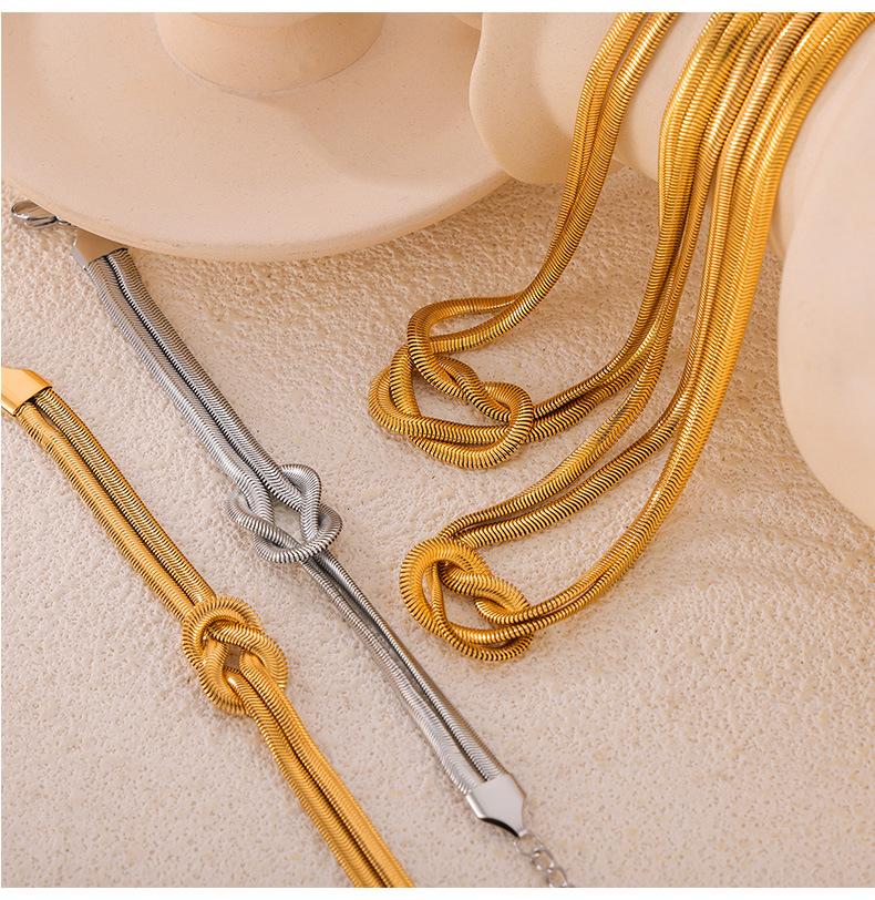 Joyería de Personalidad Europea y Americana Estilo Punk Hip Hop Diseño de Nudo de Personalidad Cadena de Hueso de Serpiente de Doble Capa Traje de Joyería de Acero de Titanio
