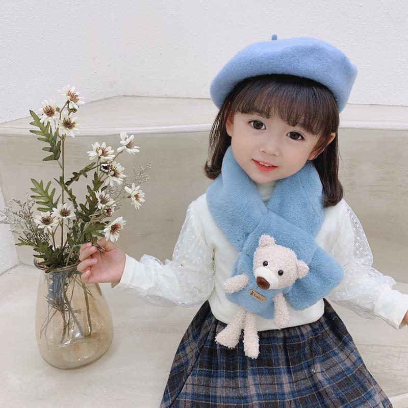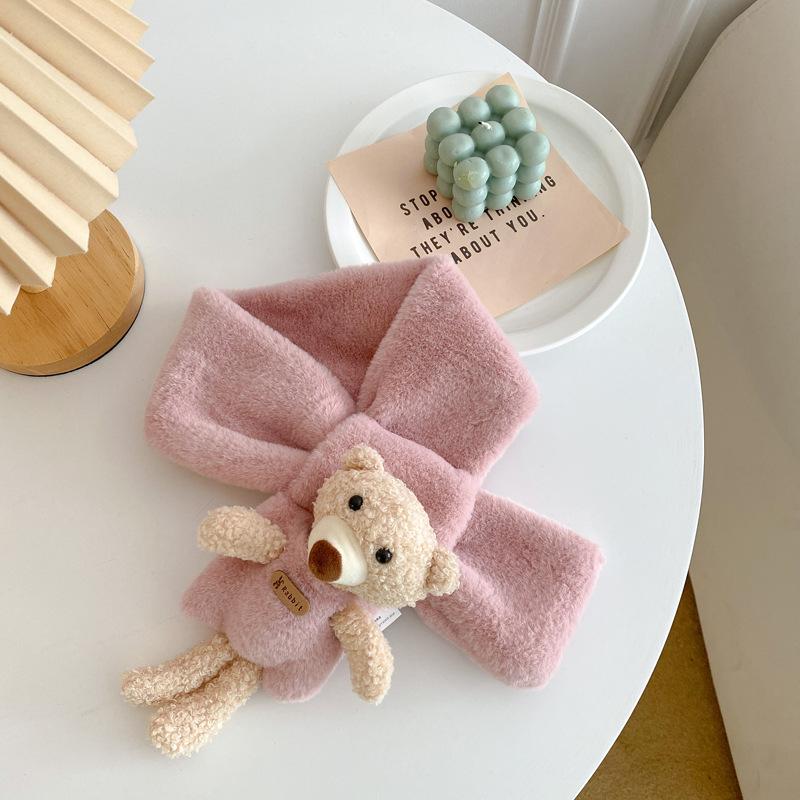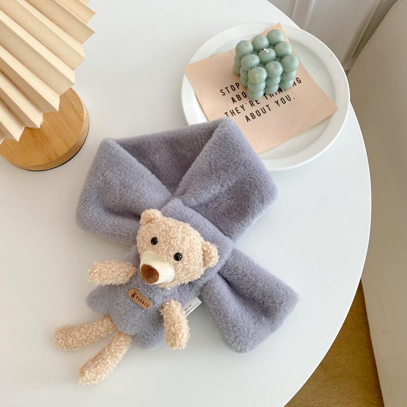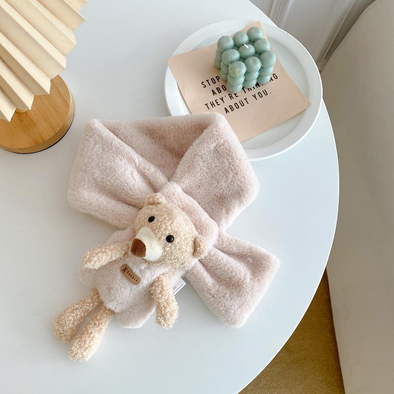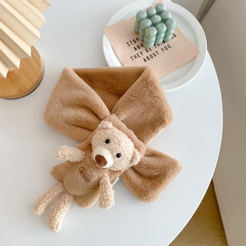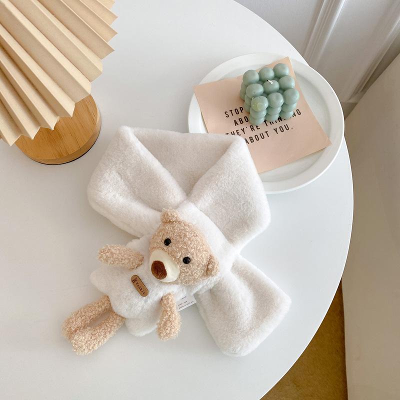 Bufanda Infantil Qiunan Otoño/Invierno 2025 Versión Coreana Ins Lindo Dibujo Animado Oso de Peluche Espesado Calentador de Cuello para Bebé Niñas