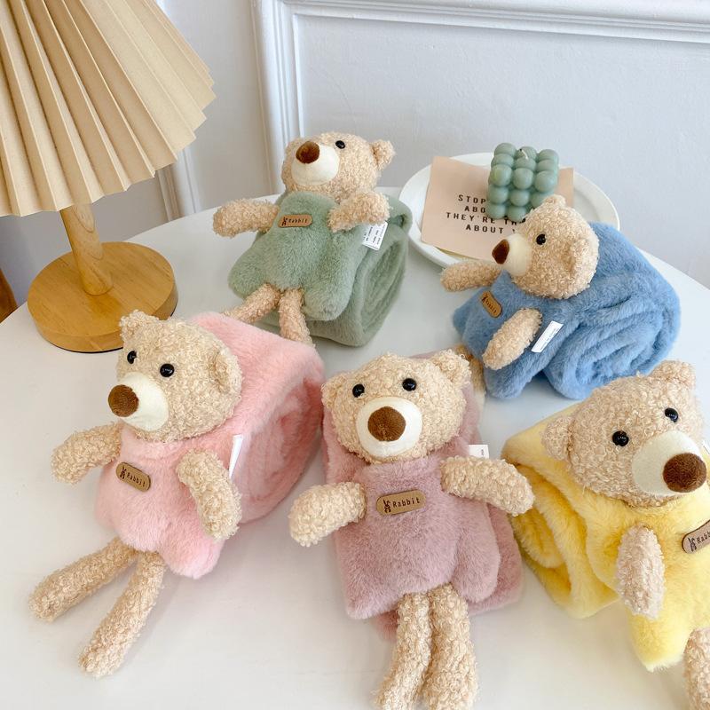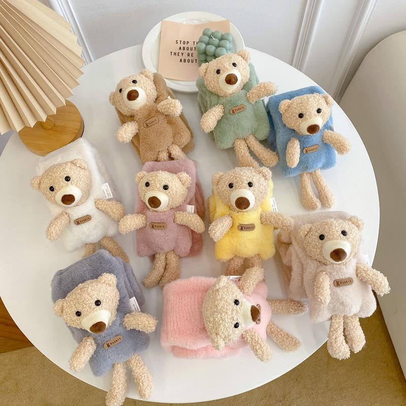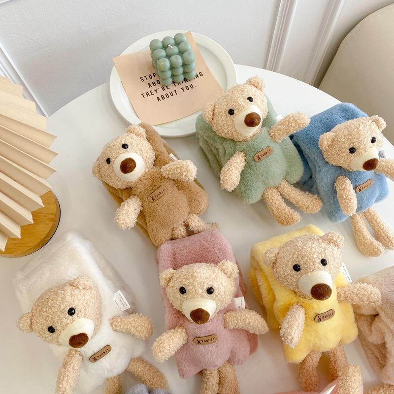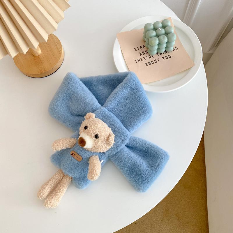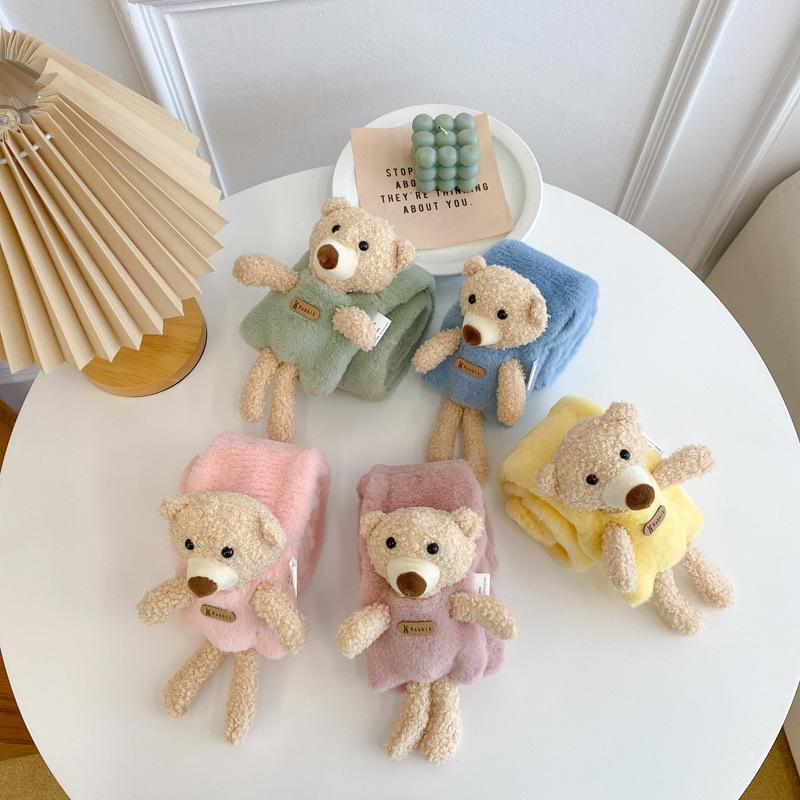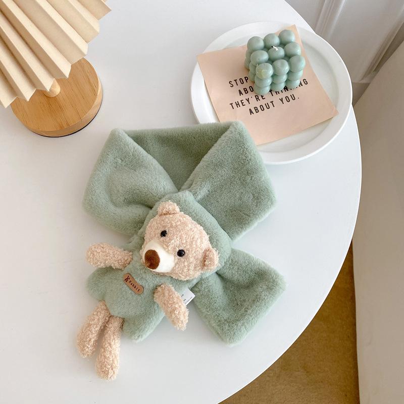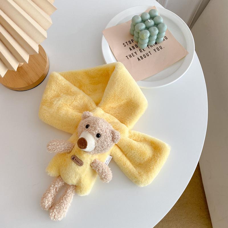 Bufanda Infantil Qiunan Otoño/Invierno 2025 Versión Coreana Ins Lindo Dibujo Animado Oso de Peluche Espesado Calentador de Cuello para Bebé Niñas