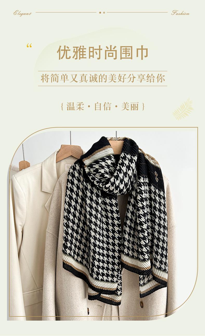 Otoño e Invierno nueva moda simple estampado pata de gallo blanco y negro marca grande alta gama estilo coreano bufanda decorativa cálida para mujer